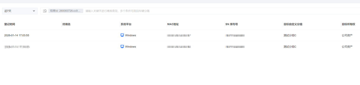 4. 单击查看日志,跳转至终端管控 > 终端管控其他日志 > 终端登记日志,可查看终端登记详细信息。