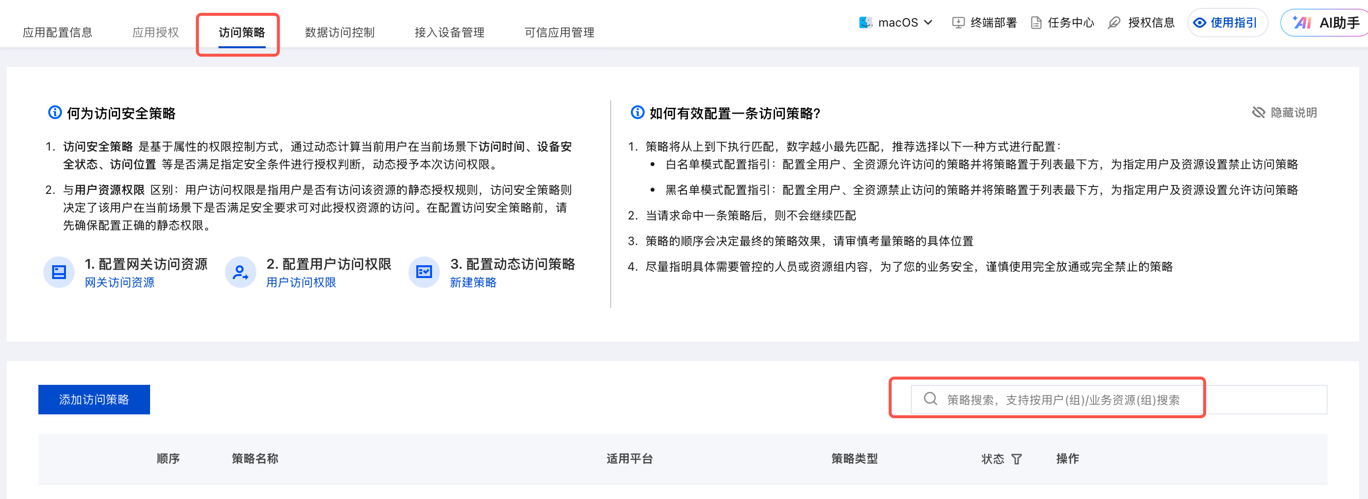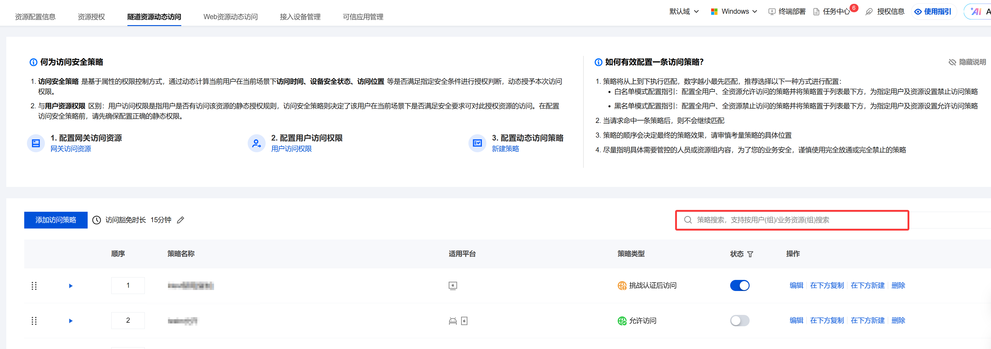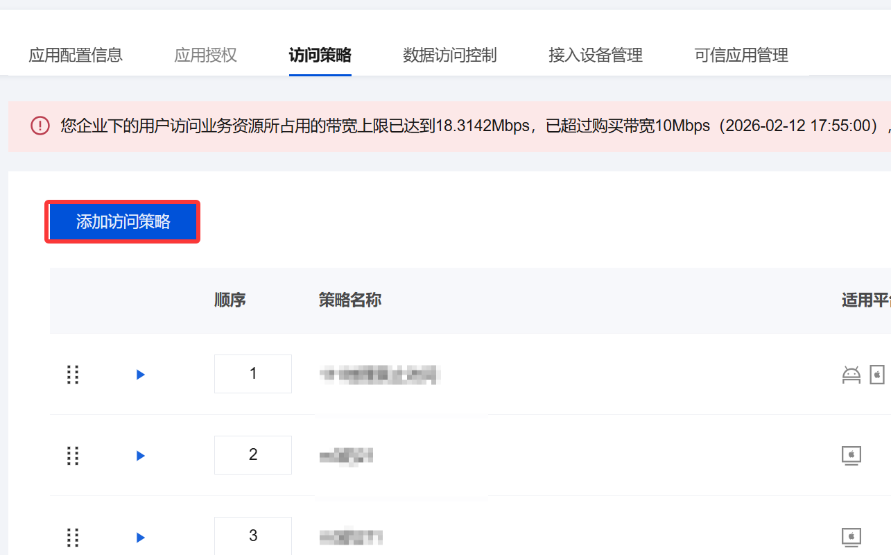 1. 在访问策略页面,选择所需策略,单击编辑。