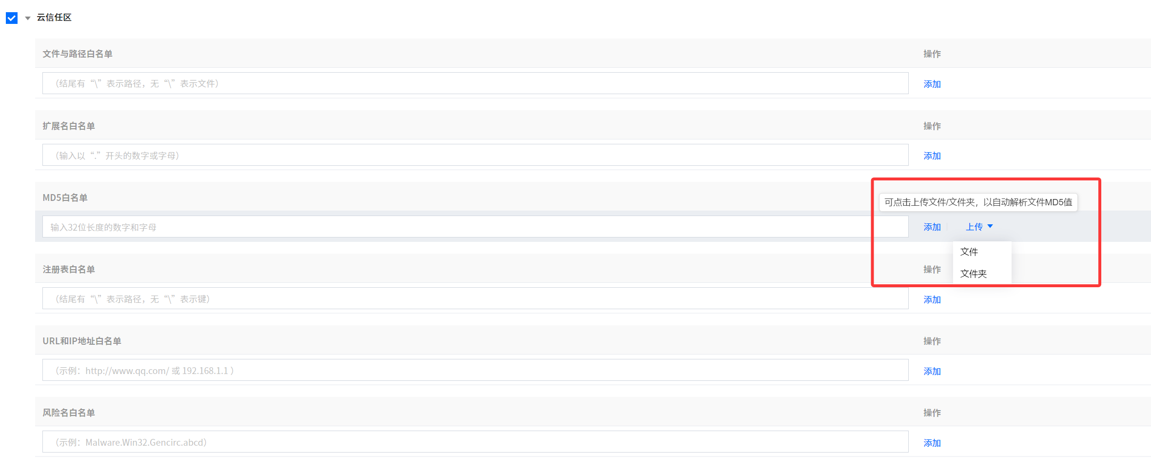 部分文件需要免查杀的白名单,如何配置?