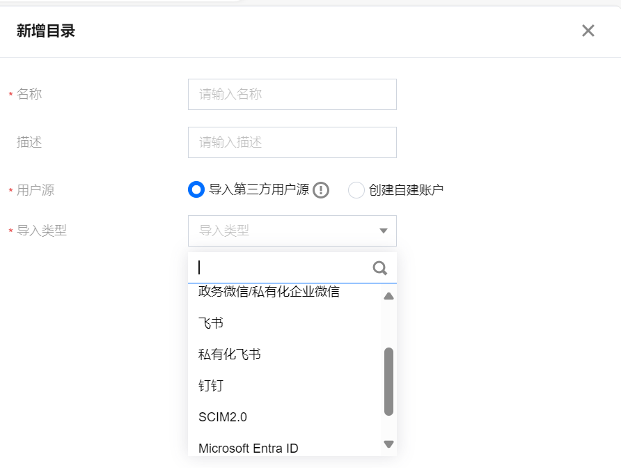 ,选择导入账户组织架构,导入目录后该目录会与组织架构信息同步。