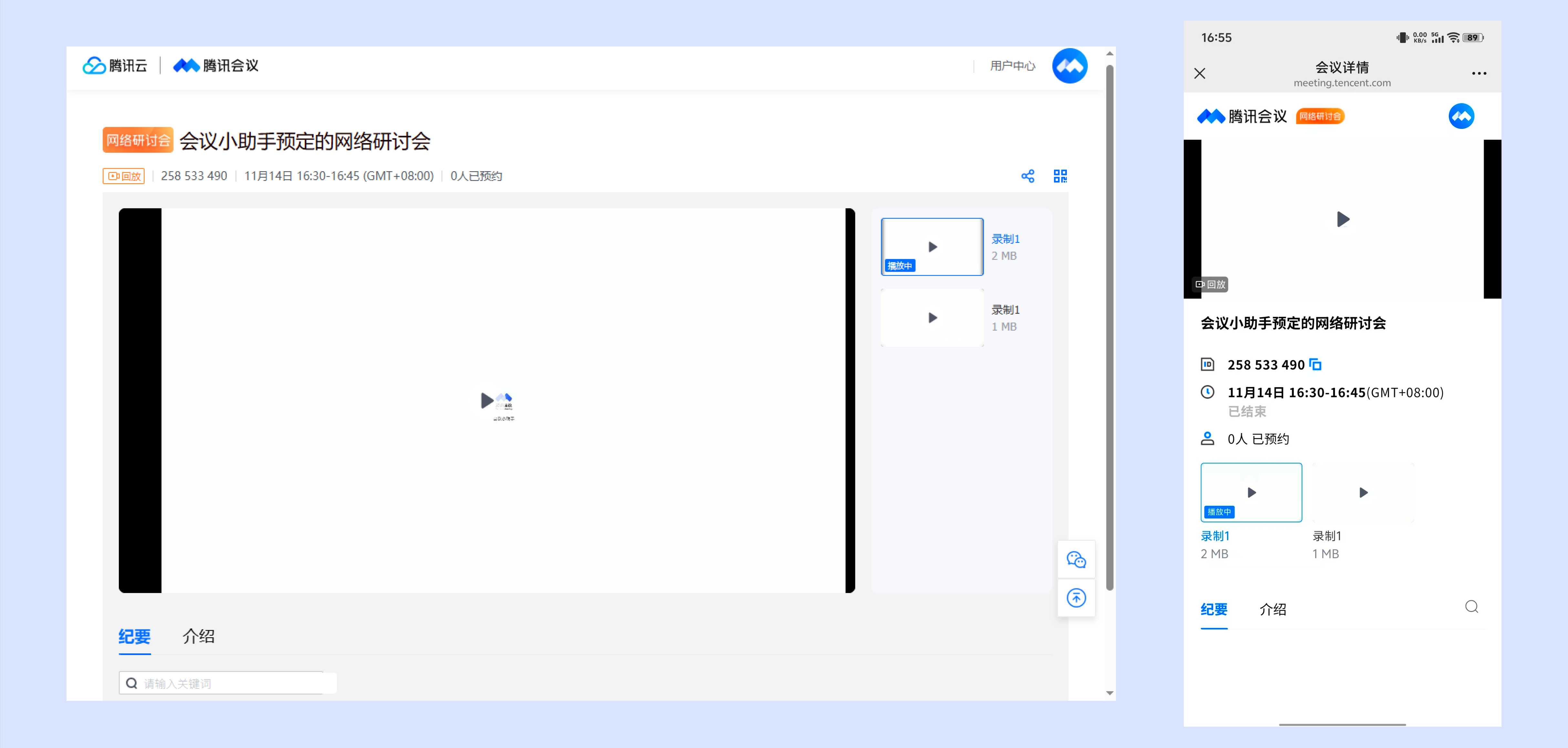 对于开启回放的会议,会议链接将自动更换为回放链接,观众可以通过会议链接直接观看回放内容。