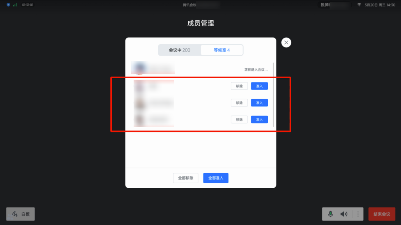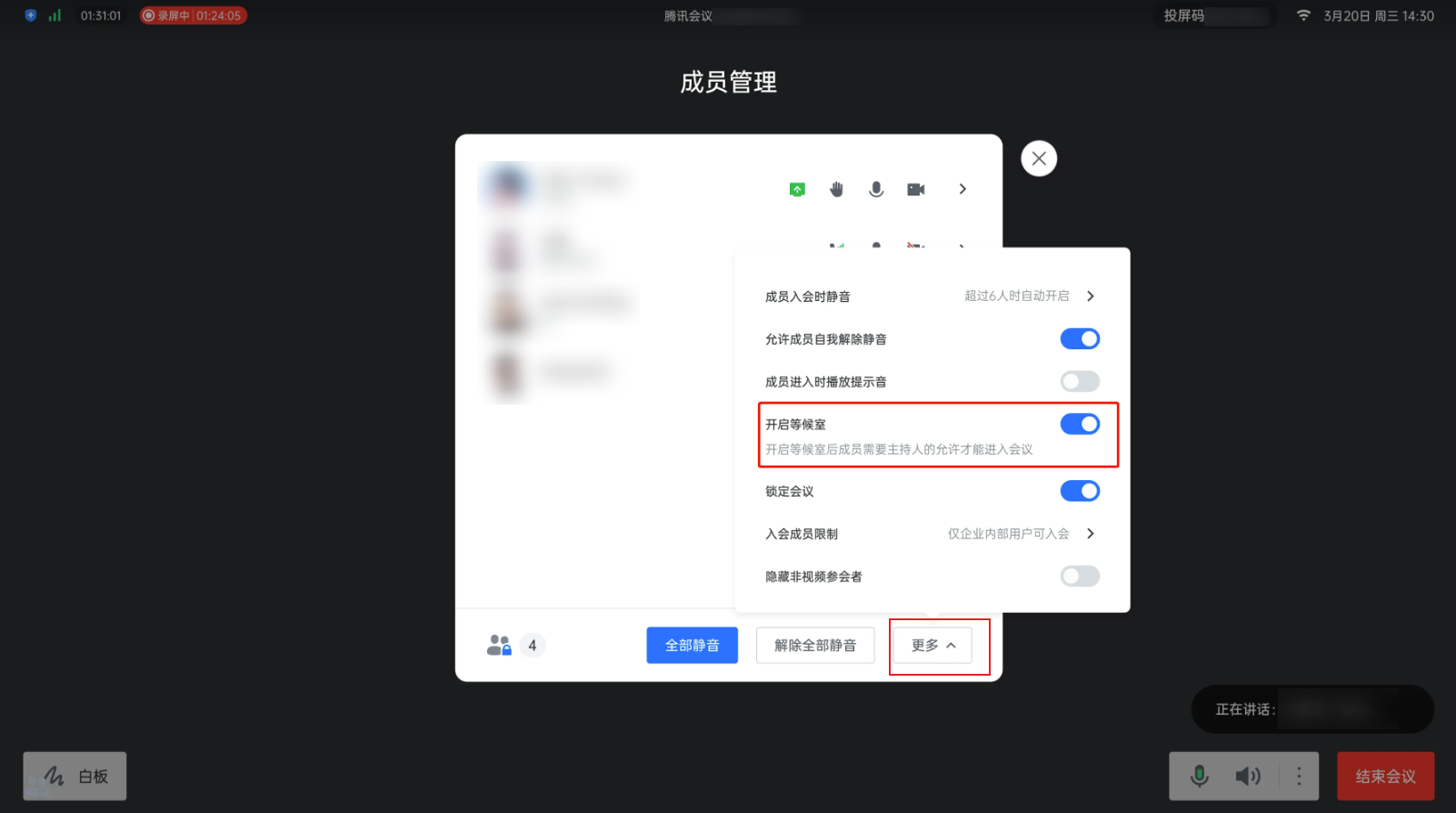 可以使用等候室功能来维持入会秩序,保障会议安全。