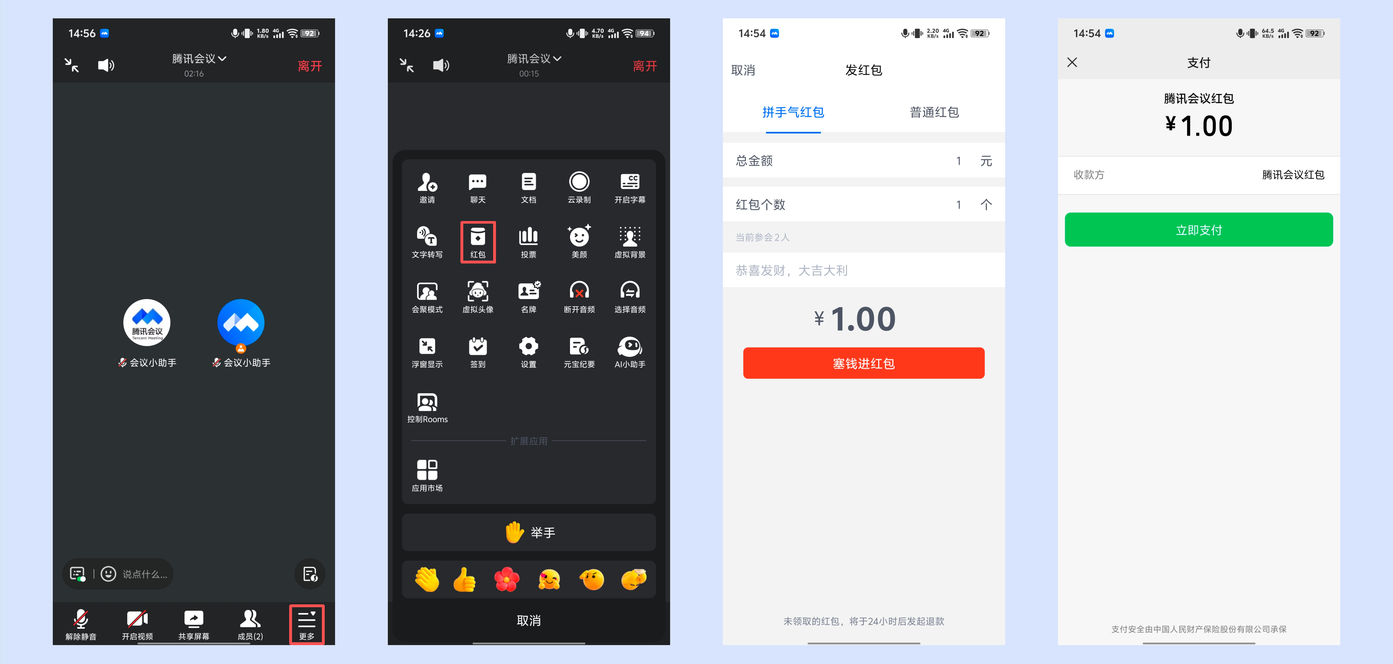 会中成员发送/领取红包:Android/iOS。