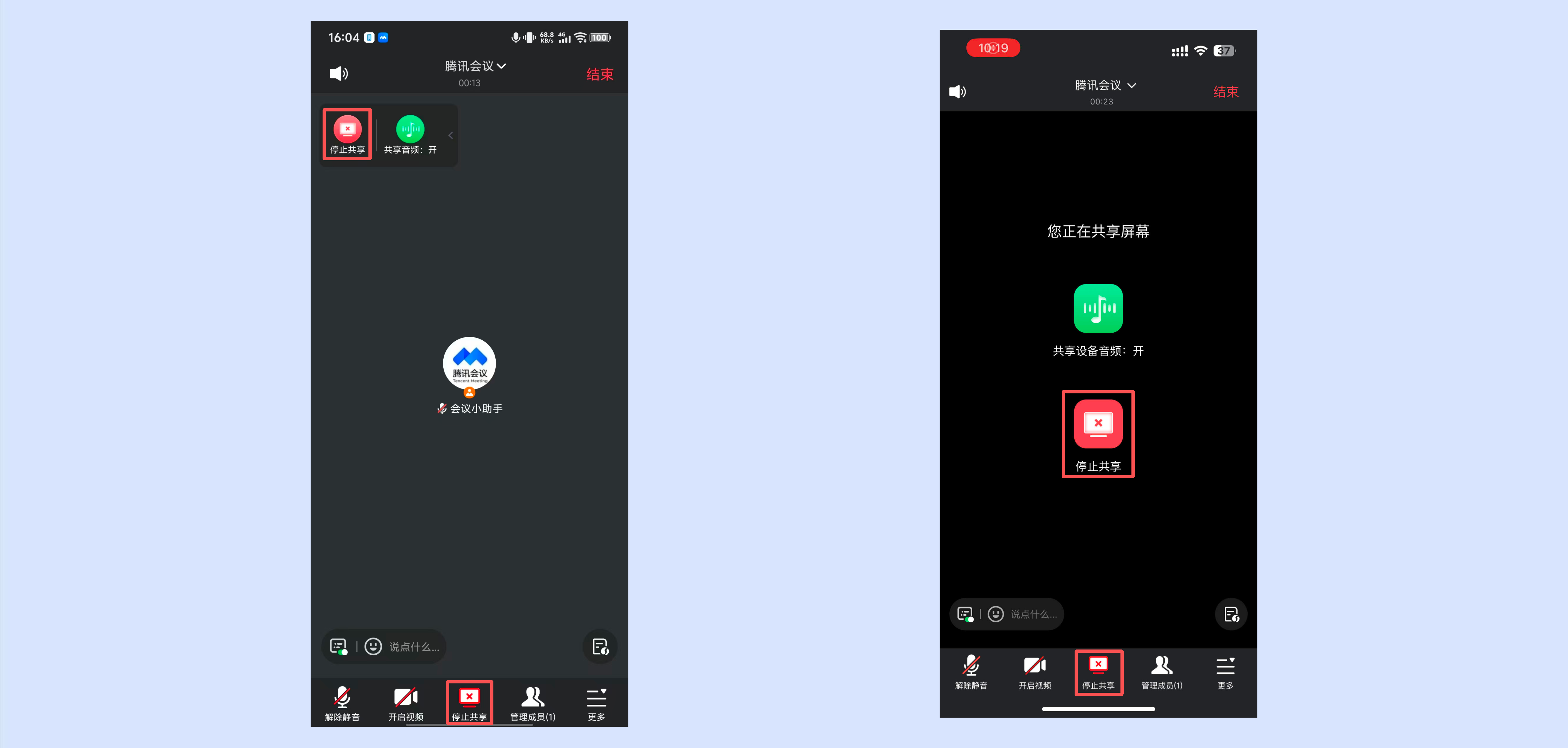主持人可停止当前共享,将共享画面切换到自己的共享内容。