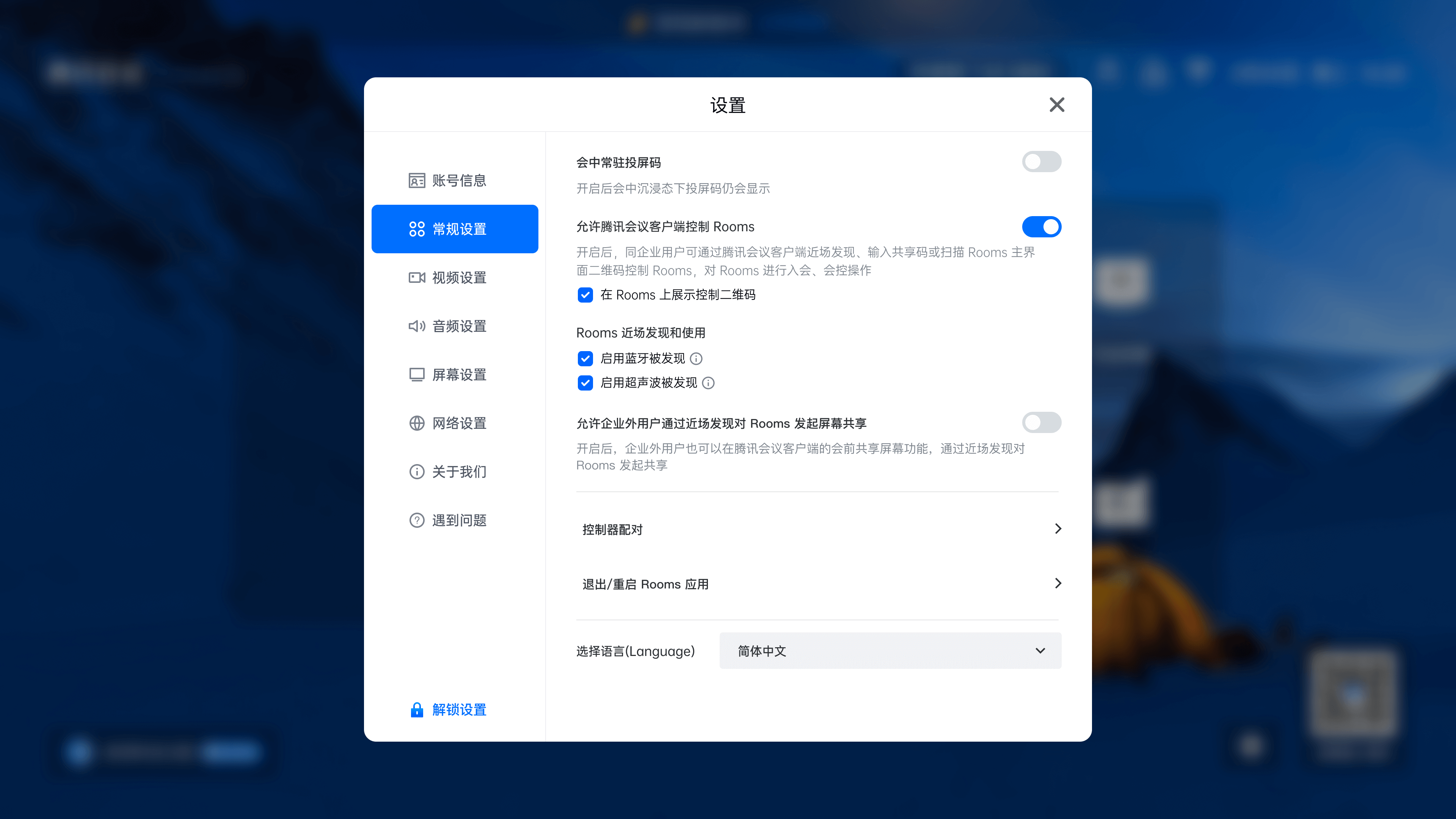 开机自动启动:勾选后,设备开机后,Rooms 将自动启动。