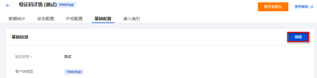 2. 在验证管理页面,选择目标场景,单击基础配置。