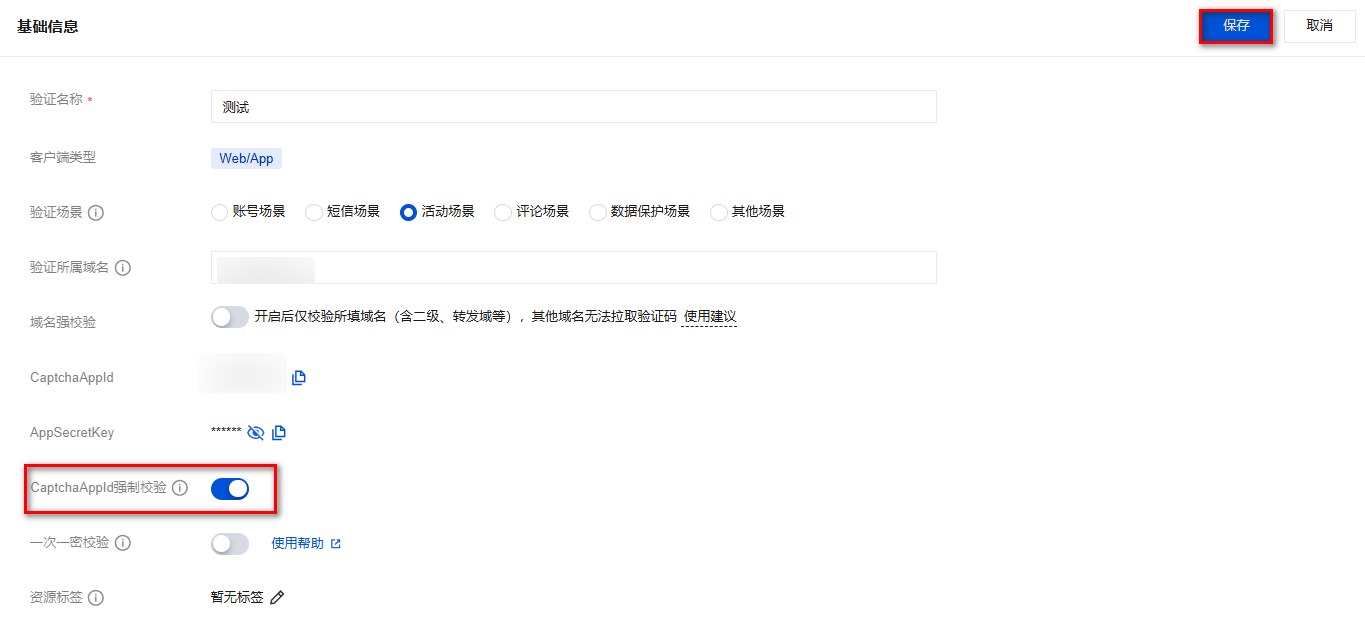 在实现 CaptchaAppid 校验前,需先在验证码控制台开启强制校验并完成配置。