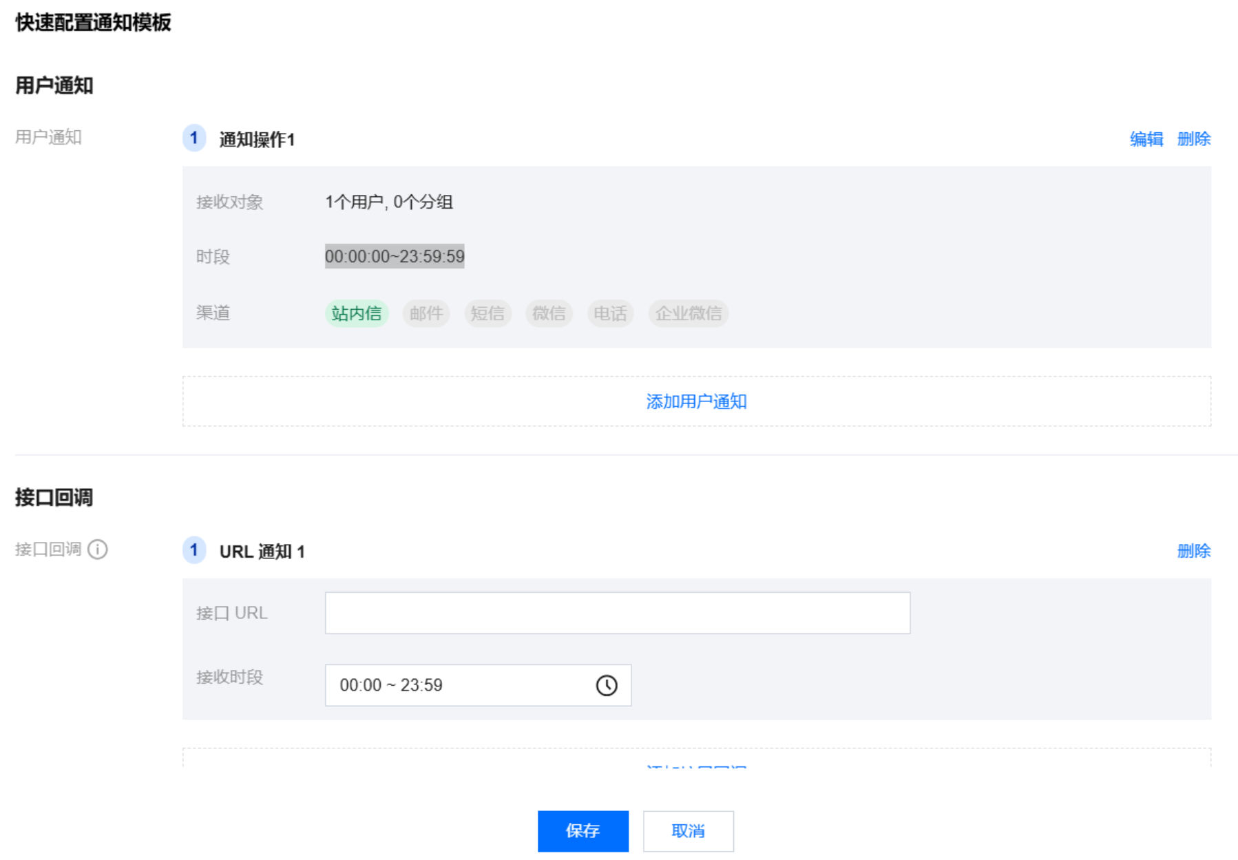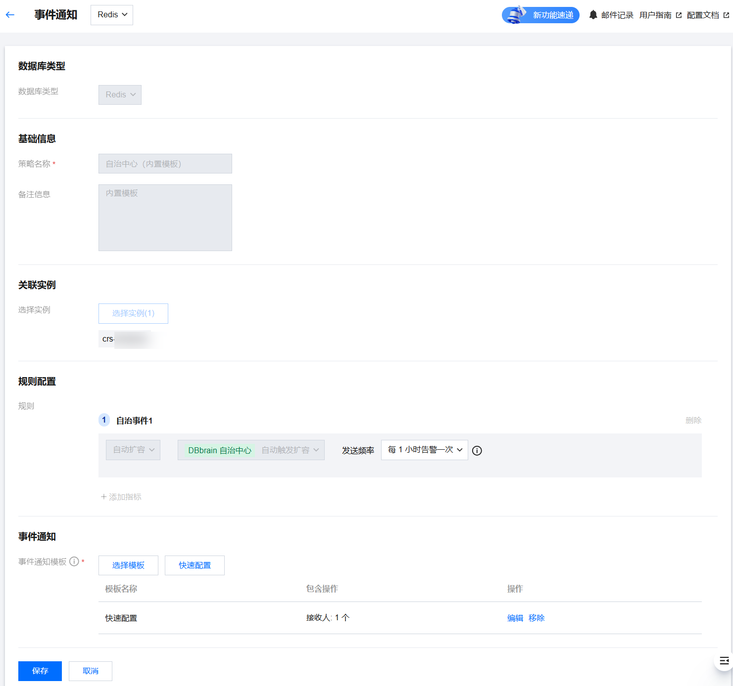 5.1 在事件通知页面,修改自动扩容自治事件的发送频率和事件通知模板,单击保存。