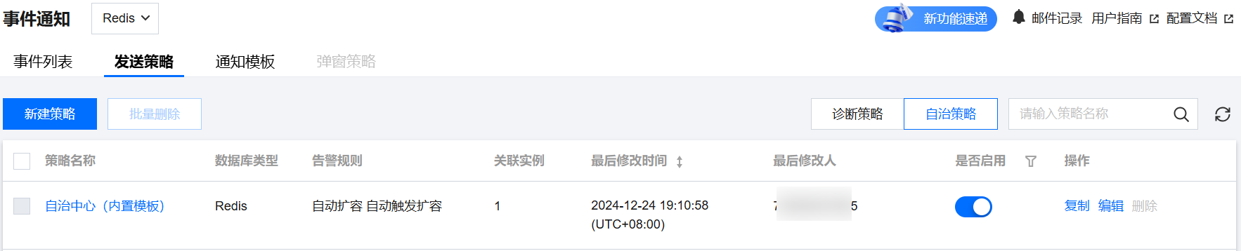 DBbrain 自治中心对 Redis 实例提供自动扩容能力,DBbrain 根据配置的内存平均利用率、扩容规格等策略,自动进行扩容,以应对不断变化的业务需求。