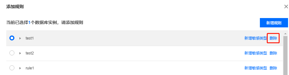 2. 在弹出的添加规则对话框,单击规则名称后的删除,即可删除该敏感数据发现规则模板。