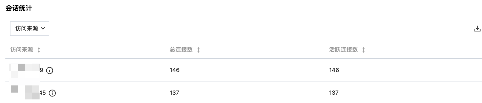 在会话统计区域,可查看已选 Proxy 节点当前访问来源、总连接数、活跃连接数的统计信息。