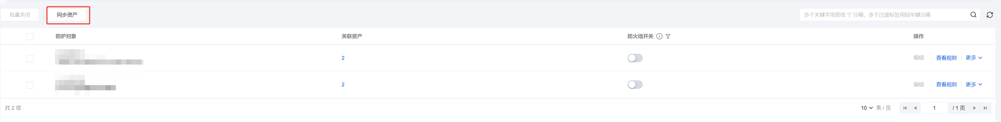 当新增的资产没有出现在防火墙开关列表时,您可以在列表上方,单击同步资产尝试同步。