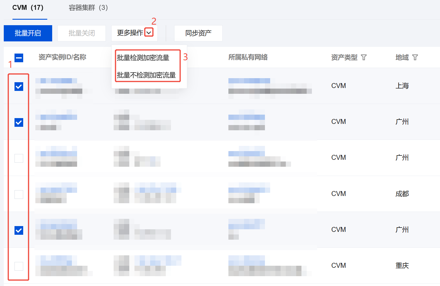 2. 若您只需对部分 CVM 资产统一配置加密流量检测状态,可通过以下步骤操作: