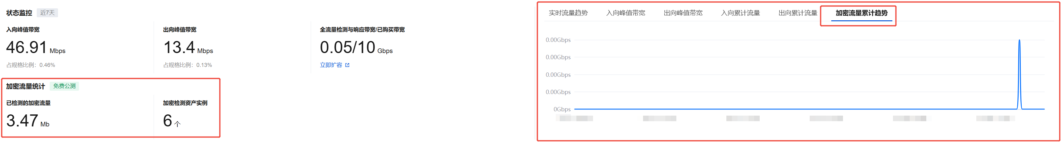 加密流量累计解析量:统计已解析的加密流量总量。