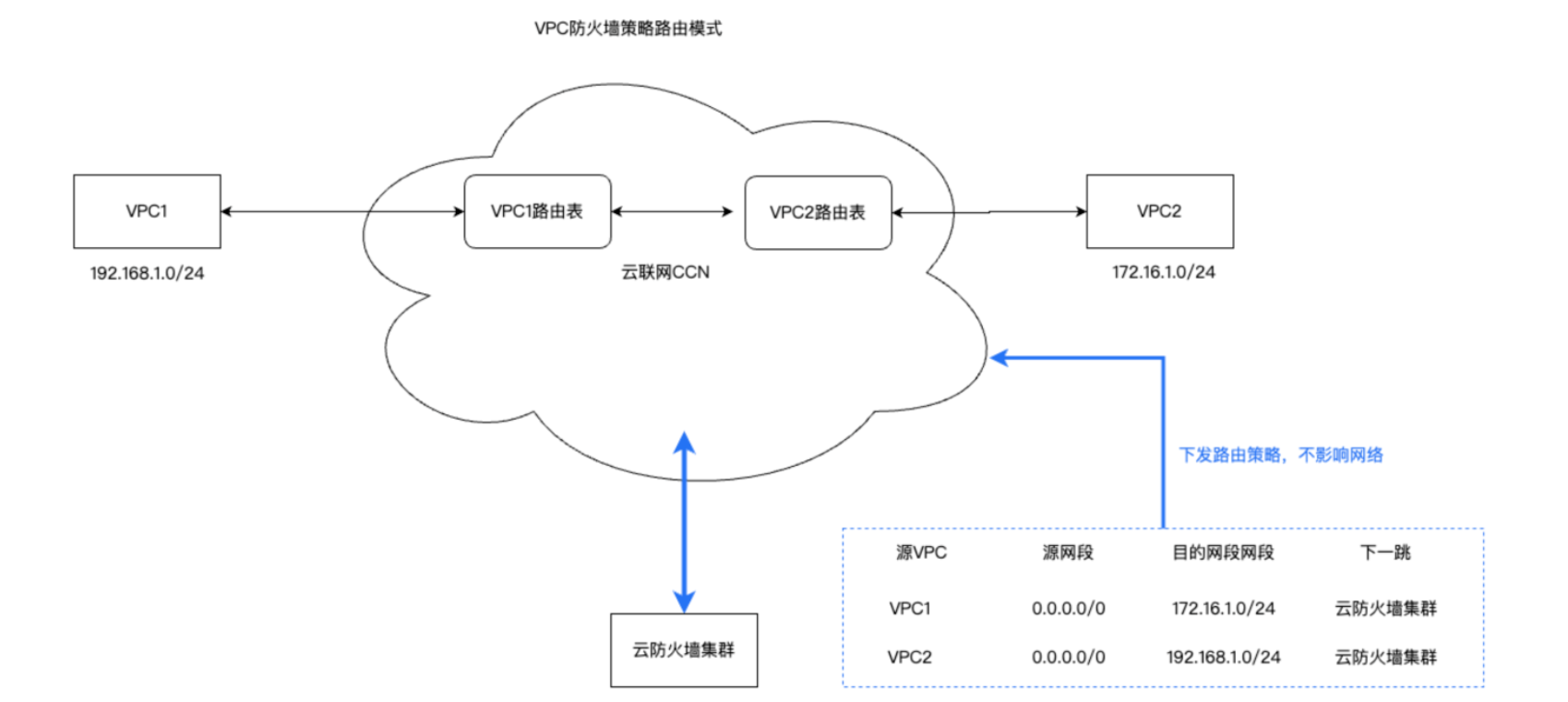 VPC 边界防火墙策略路由模式通过智能路由引流技术,实现业务无感知的安全接入。