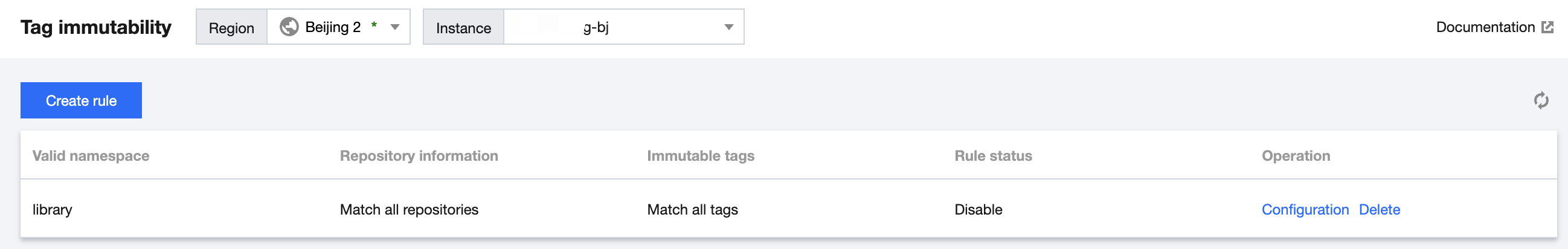 Configuration: You can reconfigure a tag immutability rule but cannot modify the namespace for which it takes effect.