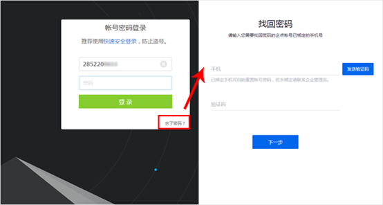 方法3:任意工号,均可在登录前的企点客户端或账户中心找到找回密码的入口。
