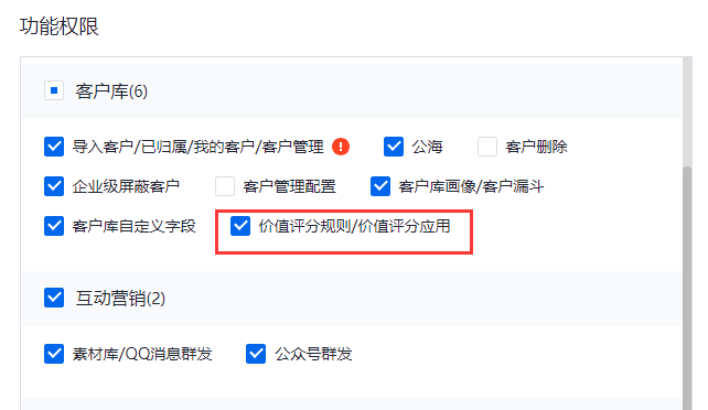 中为需要的员工勾选“价值评分规则/价值评分应用”。
