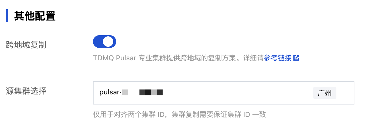 2. 在备份地域创建一个专业集群,在集群购买界面,需要开启跨地域复制开关,并选择要备份的集群;
