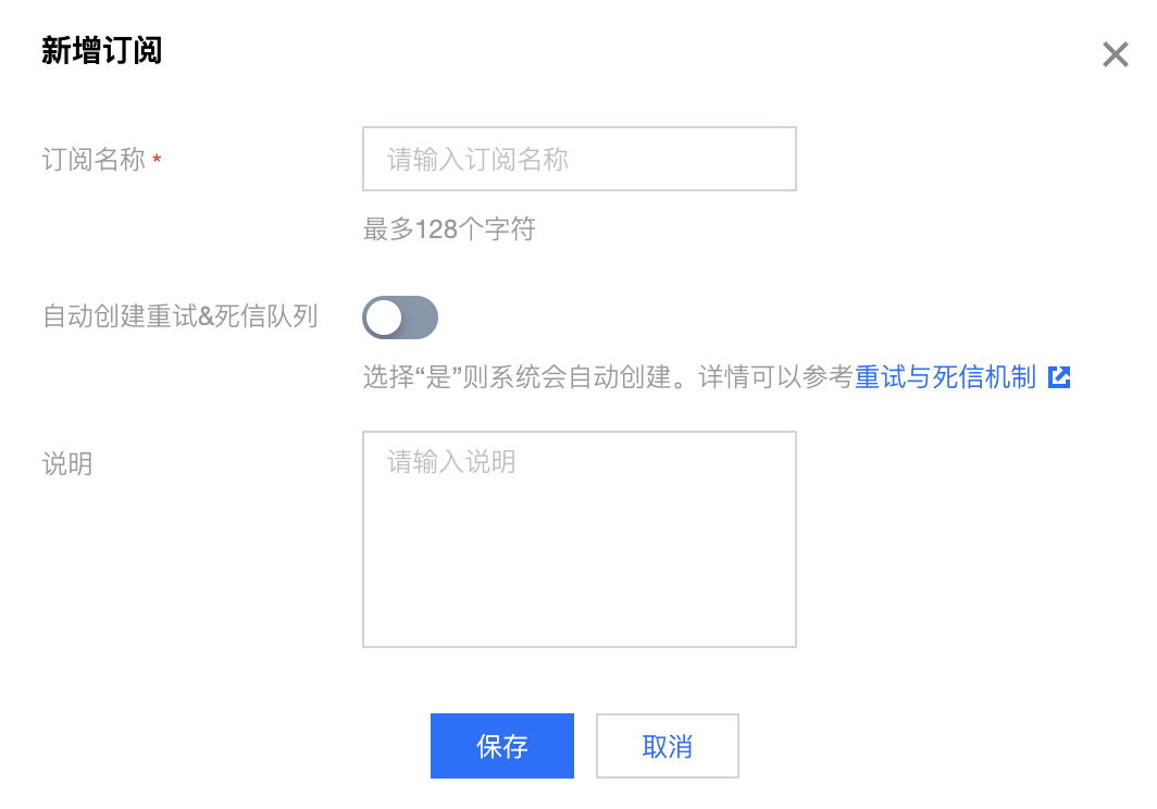自动创建重试&死信队列:可以选择是否自动创建重试和死信 Topic。