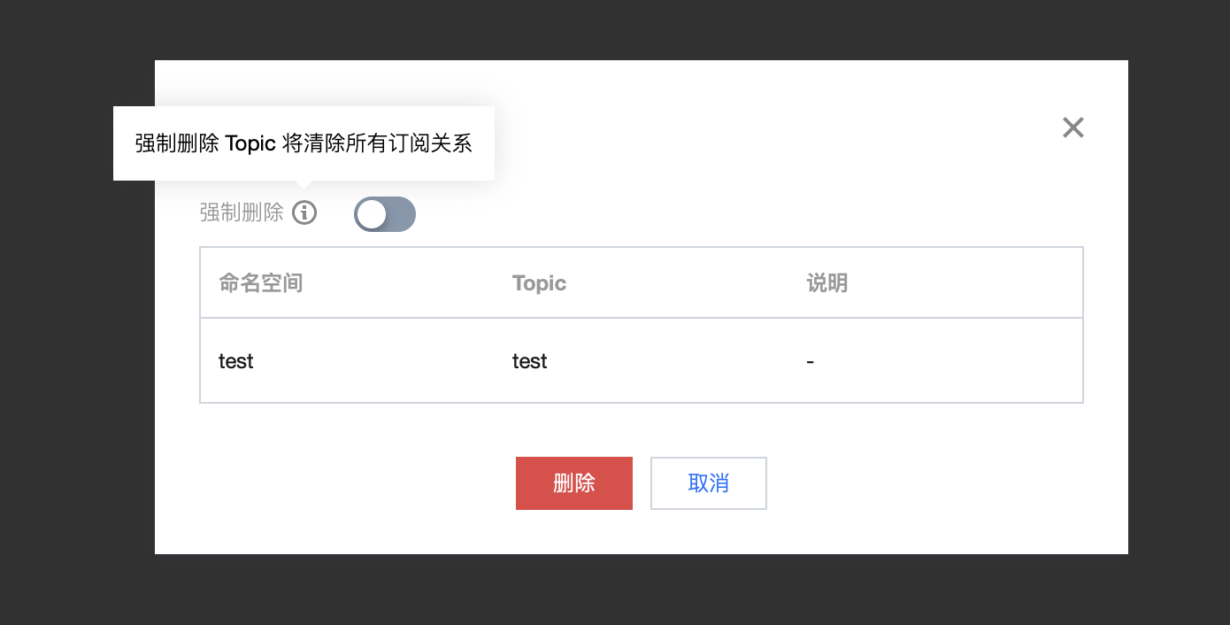 开启强制删除后,将清除 Topic 所有订阅关系。