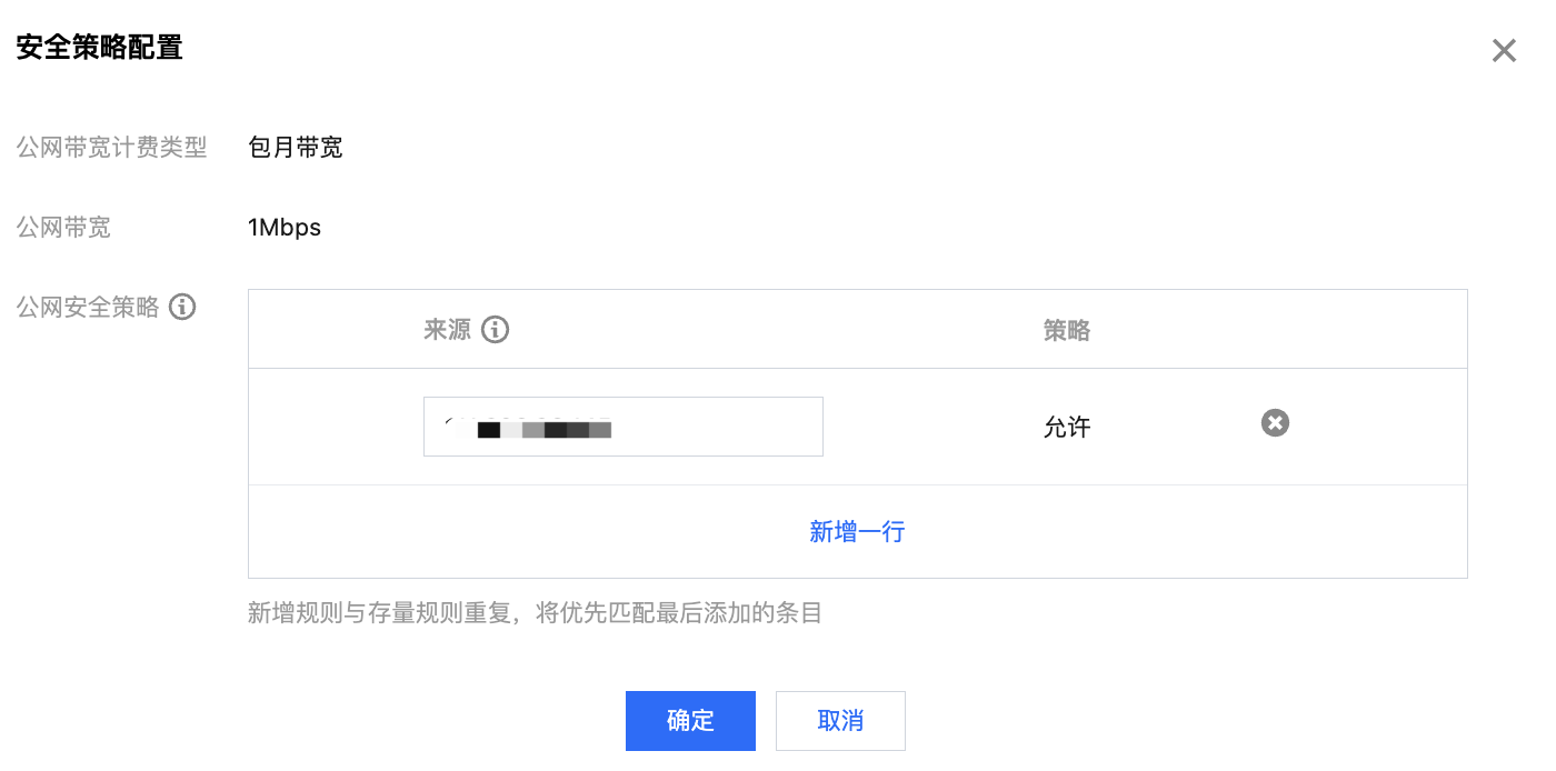 2. 在弹窗中配置好允许访问的 IP 后,单击确定,完成配置。