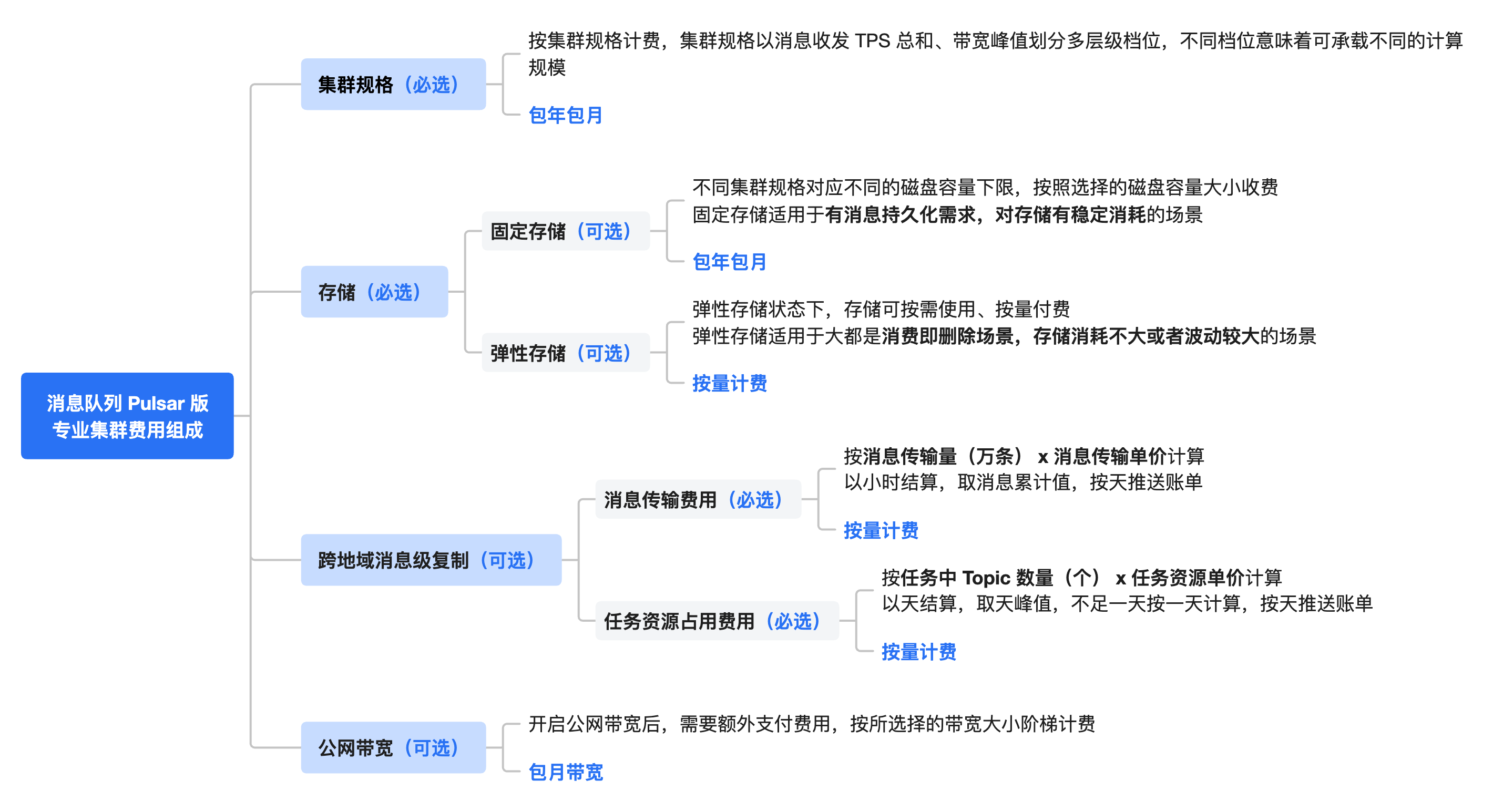 TDMQ Pulsar 版中不同类型的集群计费项不同,以下为具体的计费项说明。