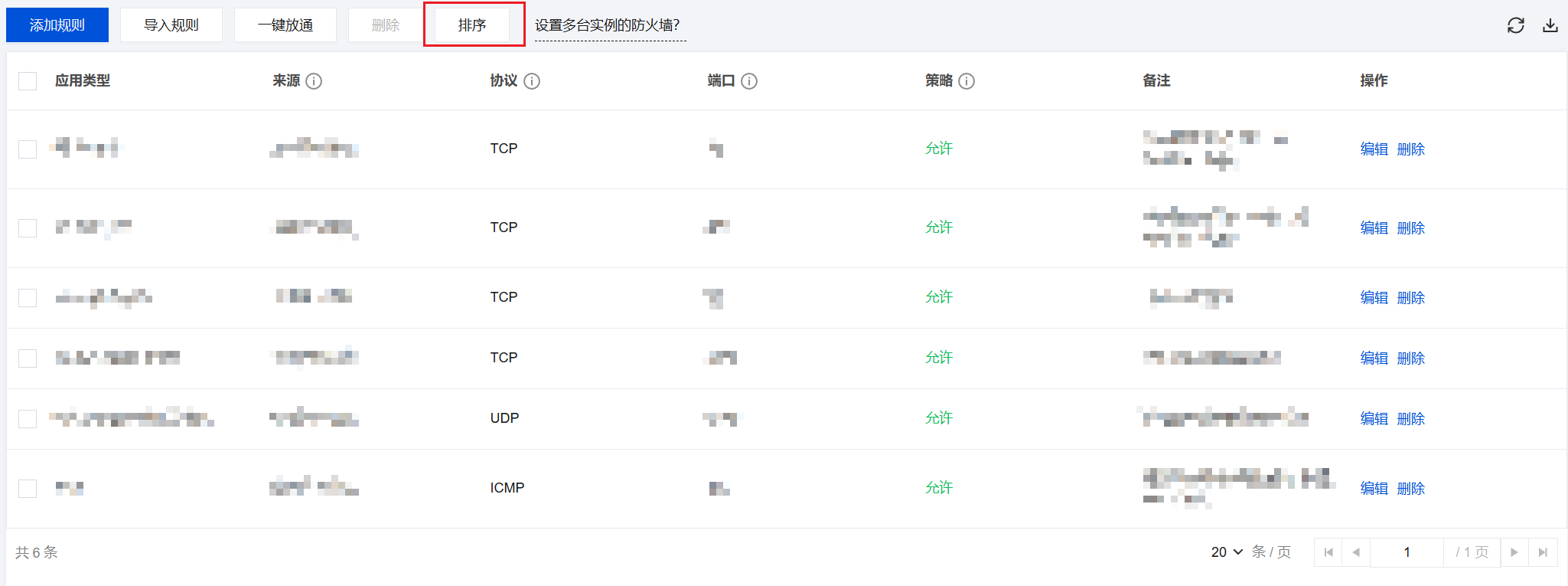 2. 在实例详情页中,选择防火墙页签,并单击排序。