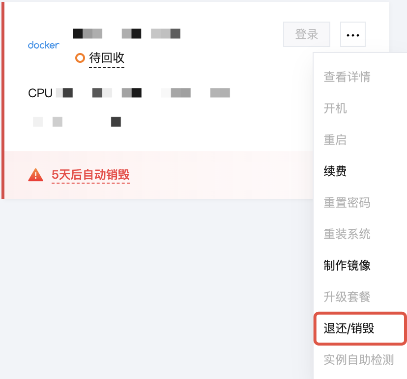 当您不再需要轻量应用服务器,可以对轻量应用服务器进行退还/销毁。服务器退还后将变为待回收状态,不再产生与该轻量应用服务器相关的费用。对于待回收的实例,您可以根据不同场景和需求进行续费(恢复)或者彻底销毁实例。