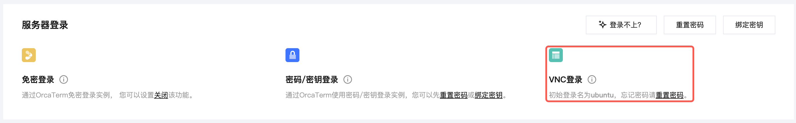 3. 选择服务器登录中的VNC 登录。如下图所示: