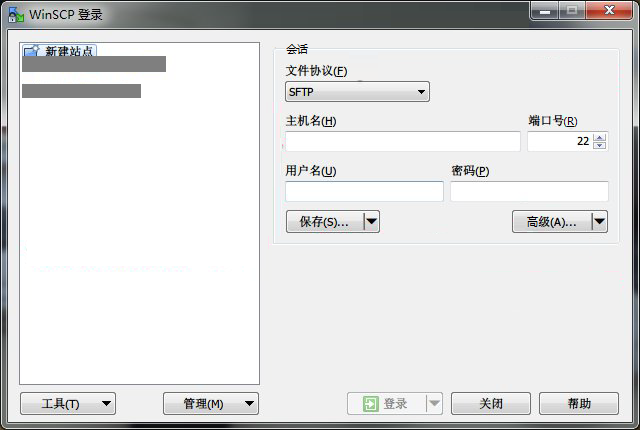 1. 打开 WinSCP,弹出WinSCP 登录对话框。如下图所示: