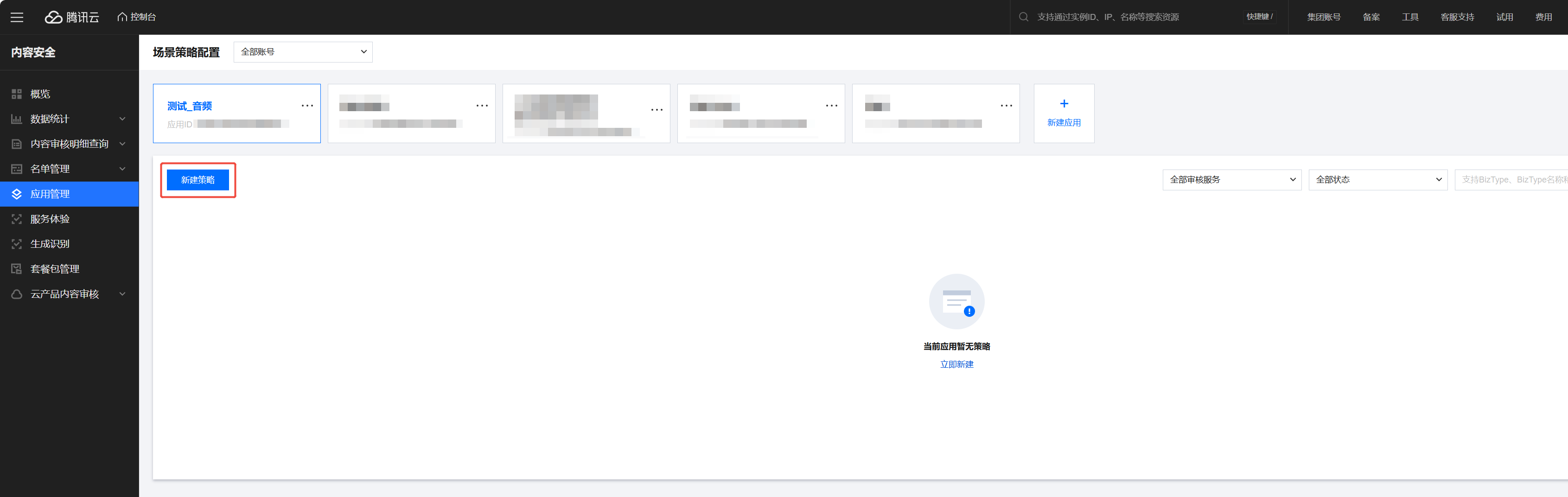 3. 在应用管理页面,单击新建策略。