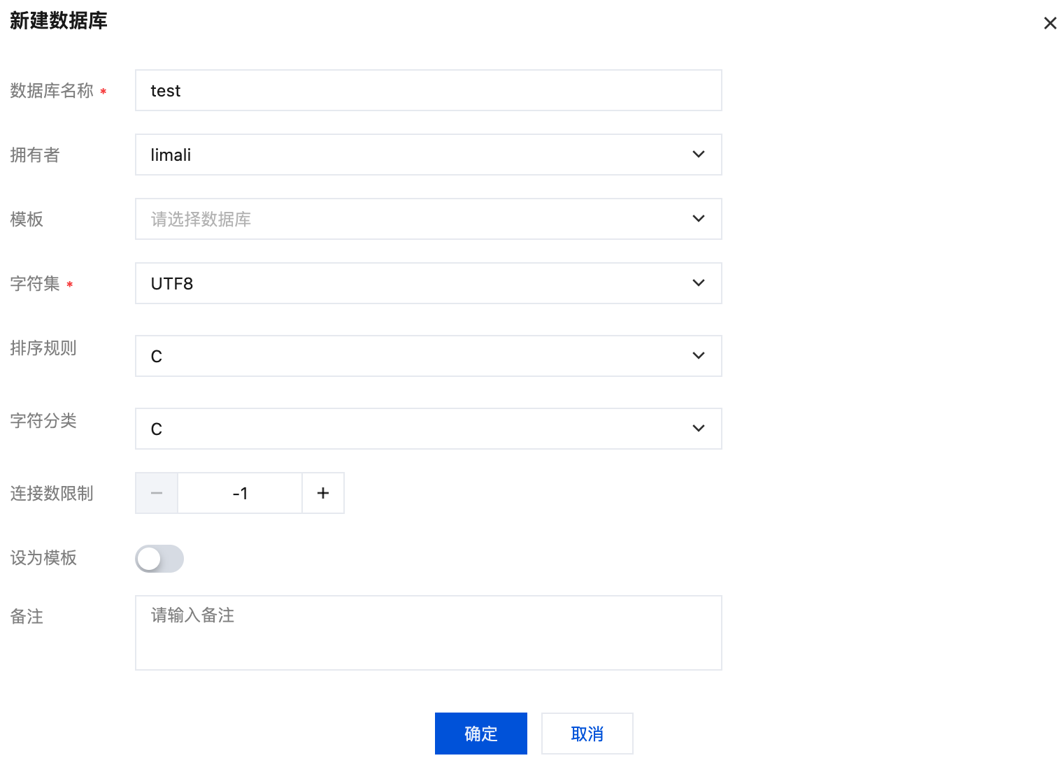 备注 | 否 | 为此数据库添加注释或描述,说明其用途、所属项目等信息。 |