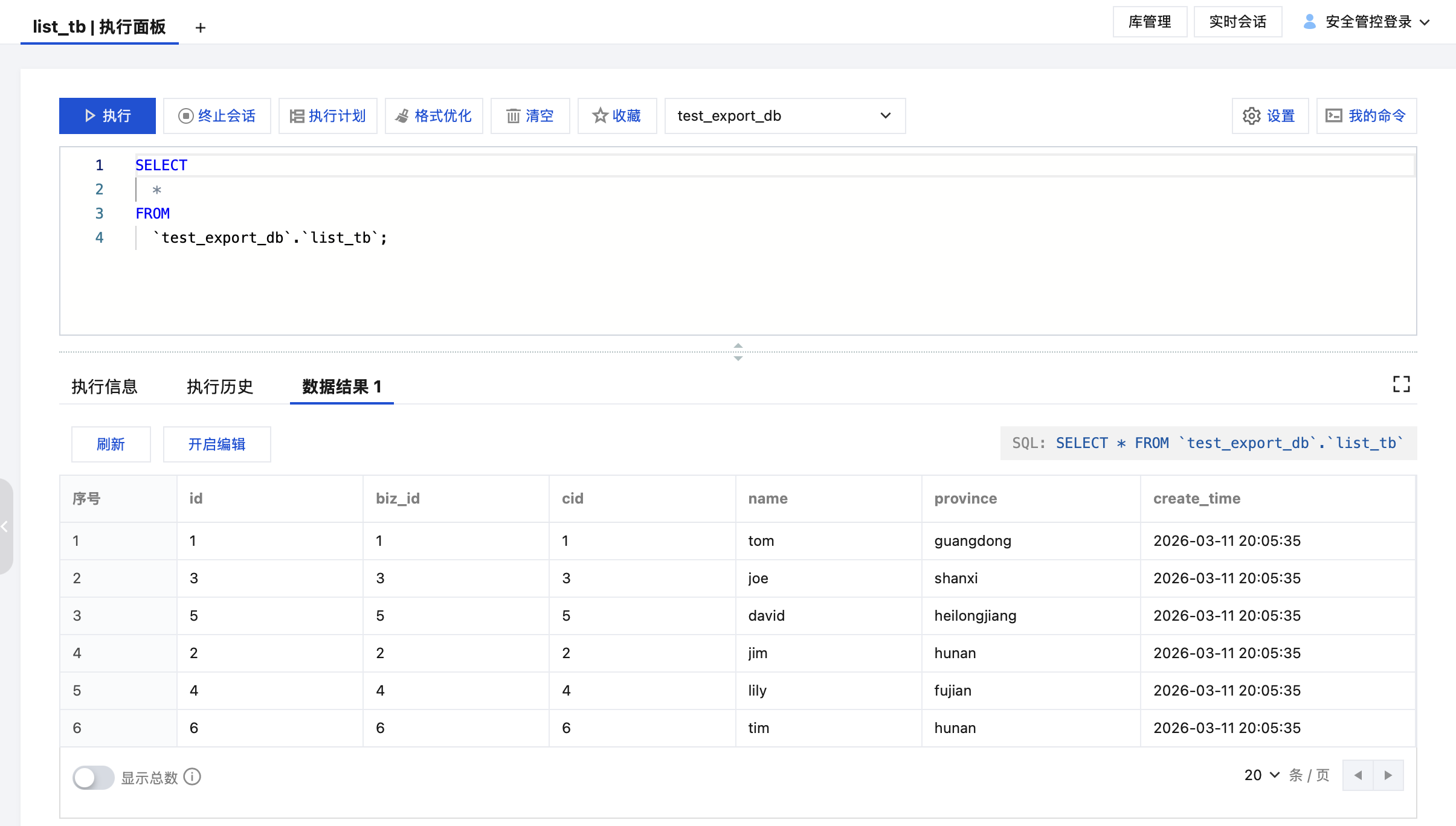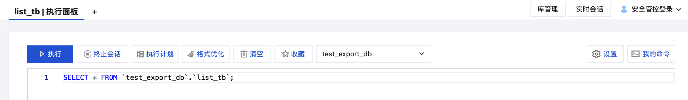 3. 输入 SQL 语句后单击执行,查看执行结果。
