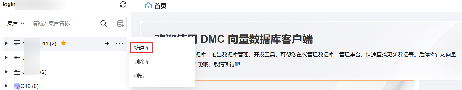 方式三:在右侧页面选择首页,在数据库管理卡片处单击开始创建。