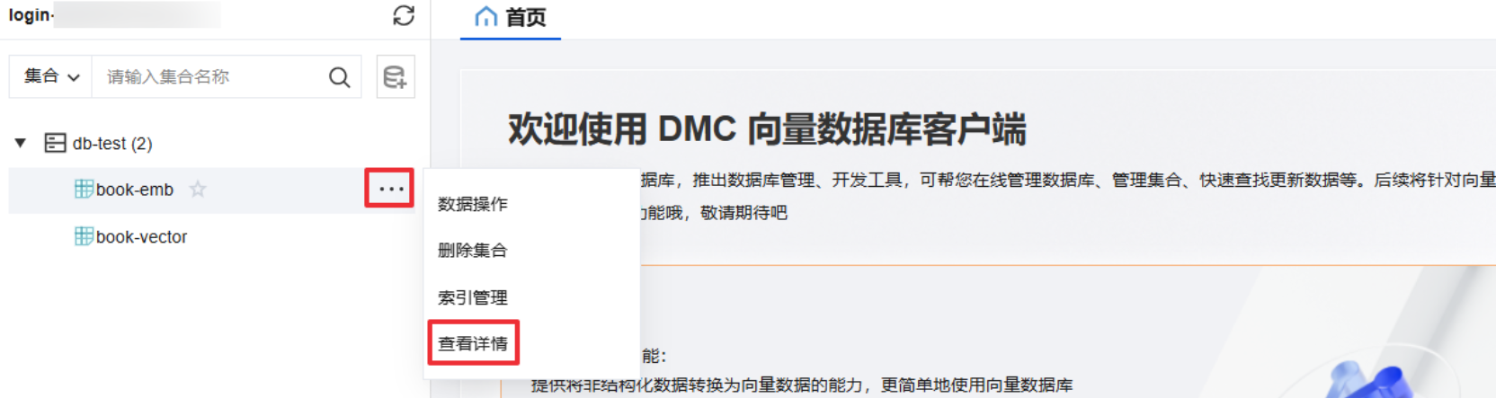 1. 在左侧库表栏,鼠标悬停至已创建的集合名称处,在右侧单击