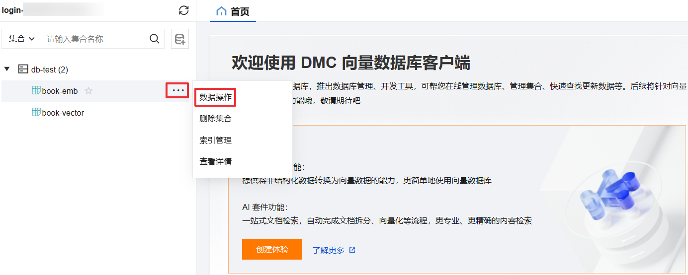 普通数据库下集合的数据操作支持精确查询、相似度检索、插入/替换数据、更新数据和删除数据。