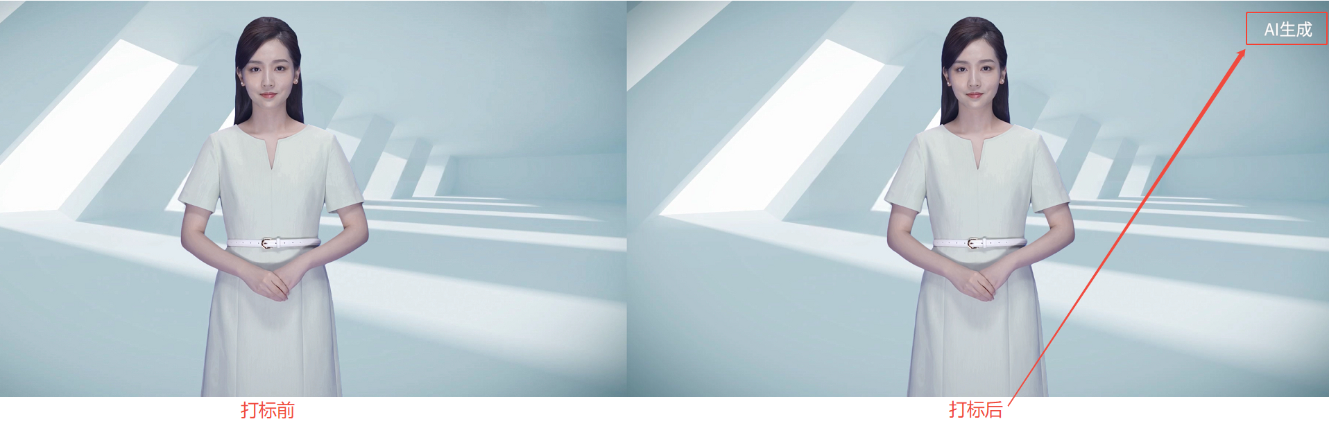 数智人平台功能新增 | 平台 | 新增 AI 标识开关:为积极响应国家关于 AI 内容标识的政策要求,平台将于9月1日正式上线 AI 标识功能,该功能默认开启,无需额外操作即可符合规范,支持用户自定义打标文案。若用户关闭 AI 标识,则需自行承担责任和义务。目前数智人平台已开启自定义打标入口。 视频打标样式: ![]() 视频生成实时率: 开启 AI 标识会对视频合成性能产生一定影响,在1080p分辨率、25fps帧率、4000kbps码率的基准条件下: 2D 通用、专属口型合成视频的实时率上浮0.1(从1:2提升至1:2.1) 2D 免训练合成视频的实时率上浮0.2(实时率范围为1:2.2~2.7)。 音频打标样式: 开启 AI 标识后,音频的最前面会采用节奏标识的形式增加显标信息,即摩斯码(嘀嘀声“短长短短”,含义为:AI)。 平台将持续优化方案,在满足合规要求的同时,最大限度保障用户体验。 | 8月12日 | |