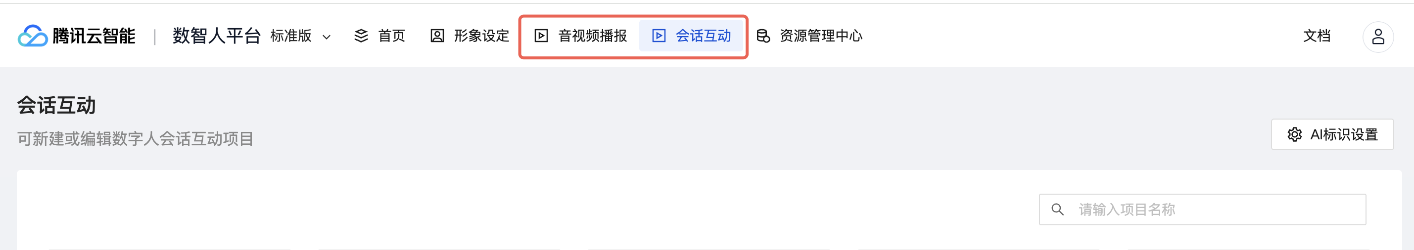 通过平台顶部导航模块,可以进入音视频播报、会话互动的应用类目,管理您的应用。