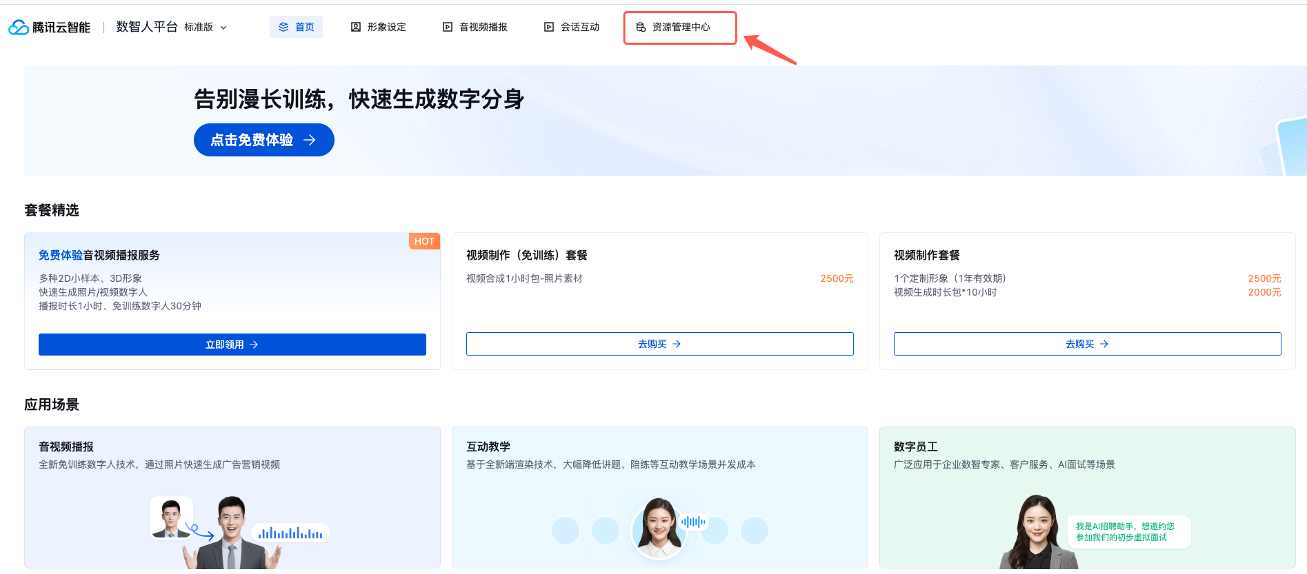 个人资产页面,客户可以通过此页面申请资产领用、查看资产信息、查看和管理账号内的(形象资产、音色资产、服务资产、定制配额)等。