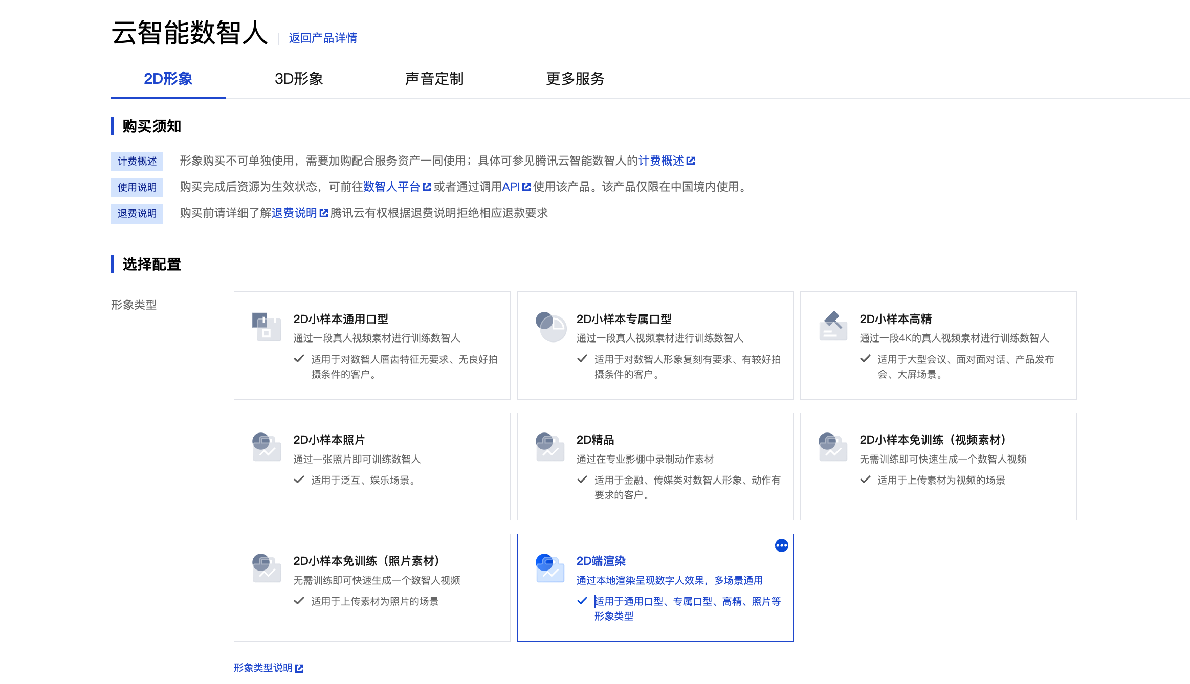 自助采购和定制 2D 小样本数字人:按 定制资产指引 完成形象定制。