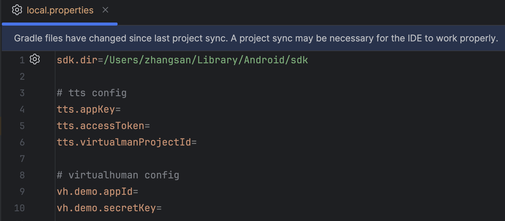 local.properties 文件包含了所有用到的 AppKey 等密钥, 请修改为客户申请的。