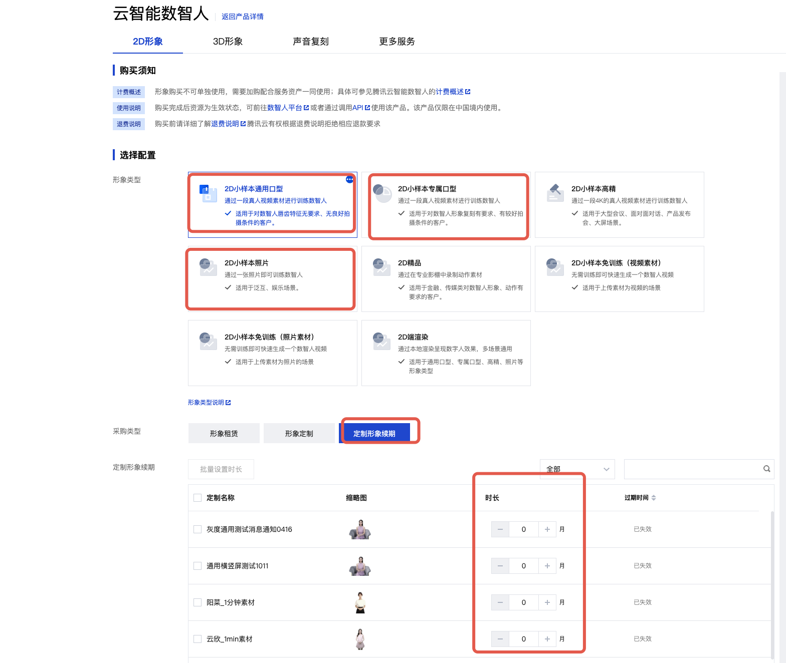云渲染场景下使用,需要保证轻量版形象在云端服务的有效期不能过期,可以通过购买形象续期来延长。(仅限 2D 小样本通用口型和 2D 小样本专属口型,2D 小样本照片无此限制)