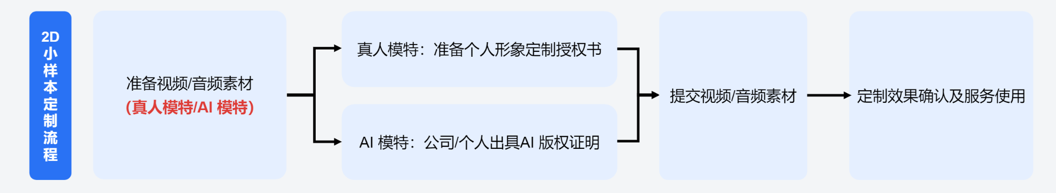 为保障客户及定制人的合法权益,根据《互联网信息服务深度合成管理规定》规定,需要采取相应措施确保已取得用户合法授权同意。客户取得用户授权后,方可通过线上接口或线下方式向腾讯云提供授权材料。每个形象都需要配套提交本人的授权材料,可支持提交视频口述授权、书面材料授权两种授权模式(优选同时提供两种授权模式)。