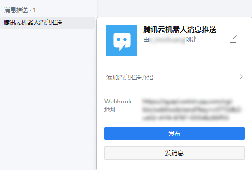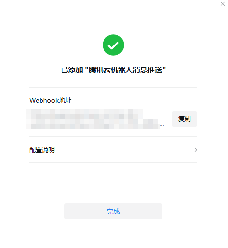 6. 机器人创建成功后,会直接展示 Webhook 地址。