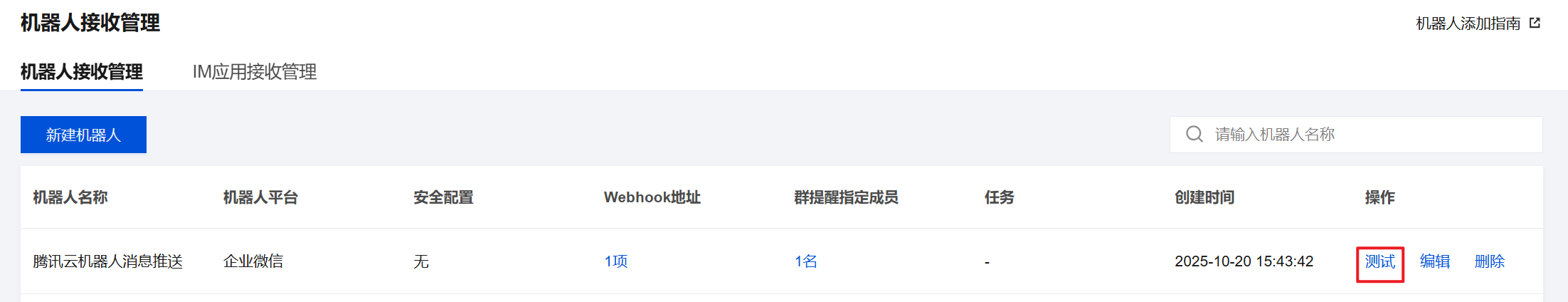 1. 登录消息中心控制台,在左侧导航栏单击 机器人接收管理。