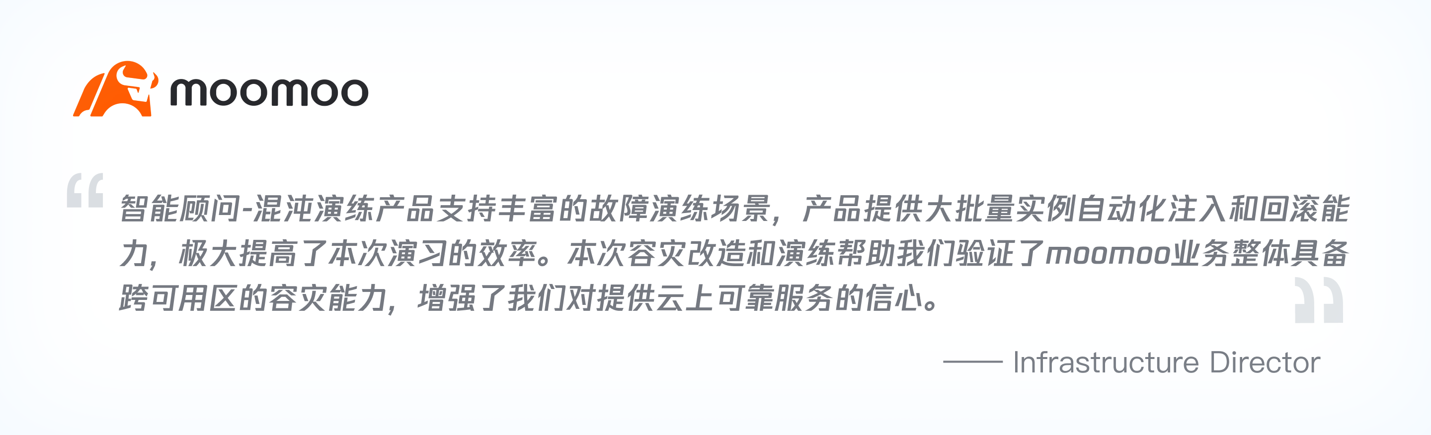 富途是一家领先的数字化金融科技公司,专注于为用户提供覆盖多个市场的全数字化金融服务,继而提升投资体验。随着业务扩展,企业面临复杂性与稳定性挑战,业务上云、分布式架构以及快速迭代更加大了故障发生概率。为了提前发现系统的可用性问题,给客户提供更稳定的服务,富途旗下品牌 moomoo 与智能顾问-混沌演练联合开展了容灾演练 GameDay 实践。