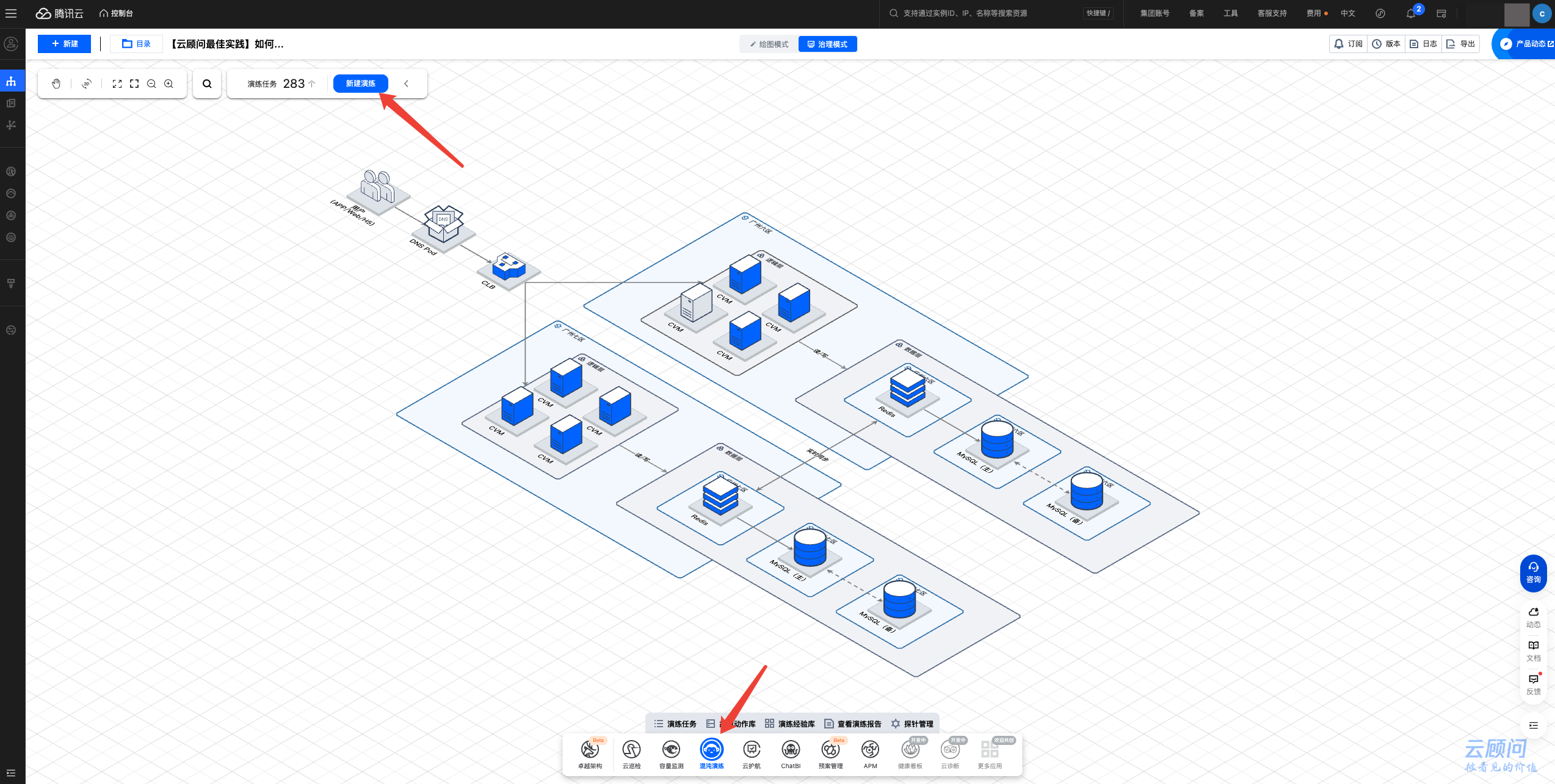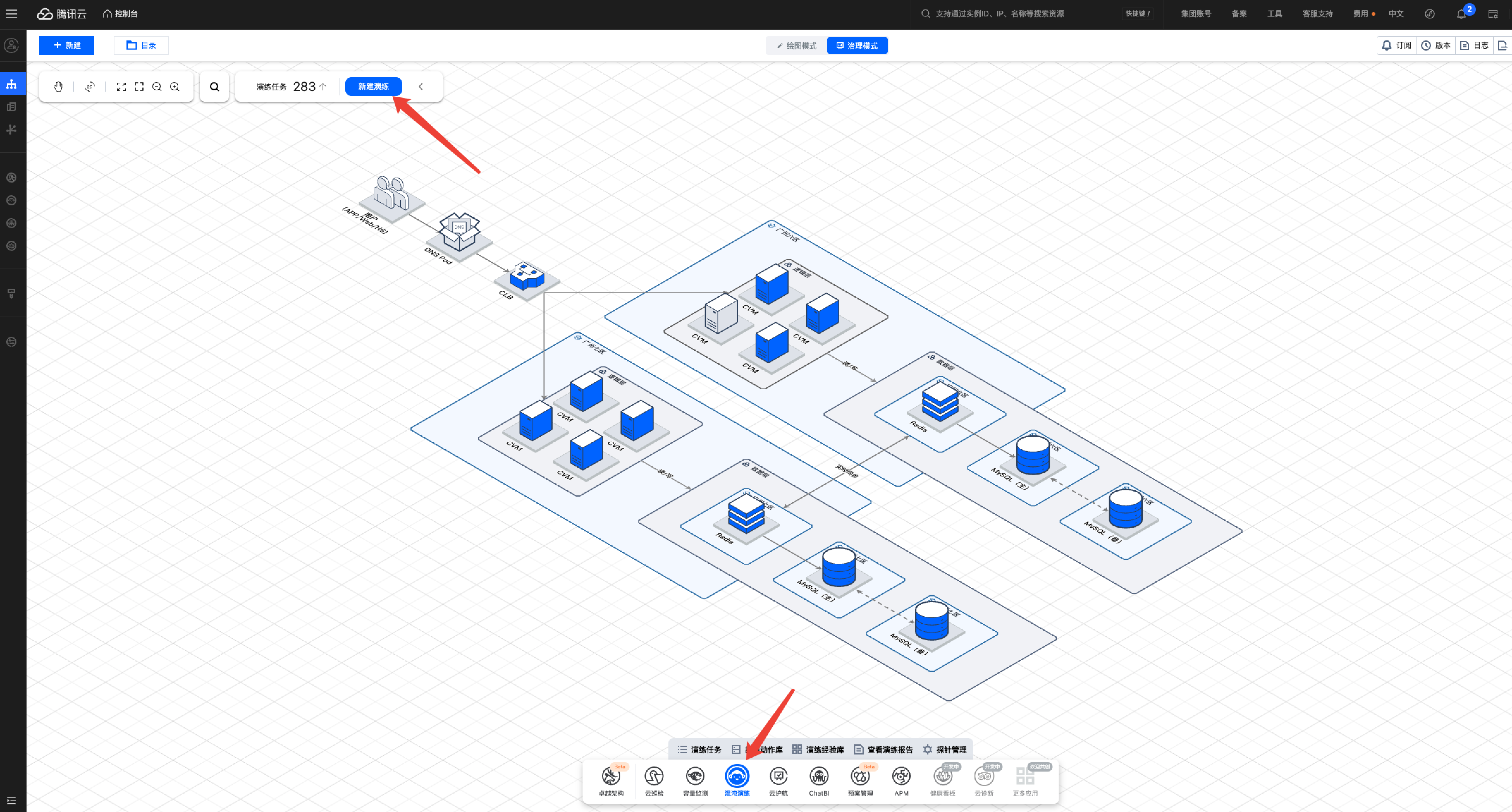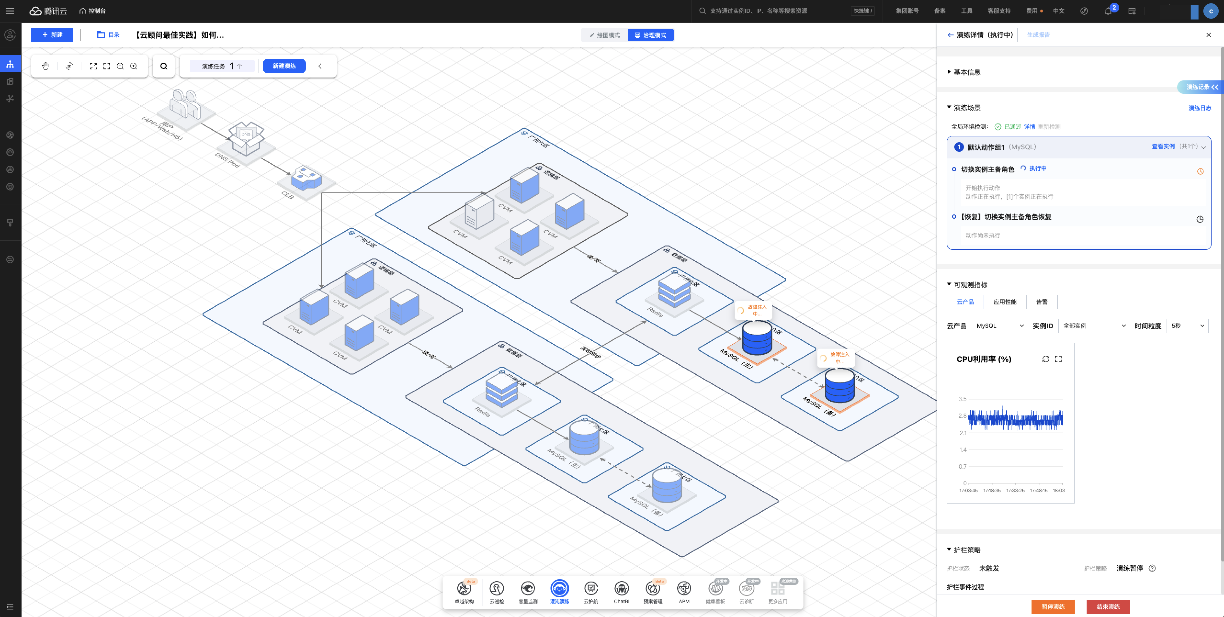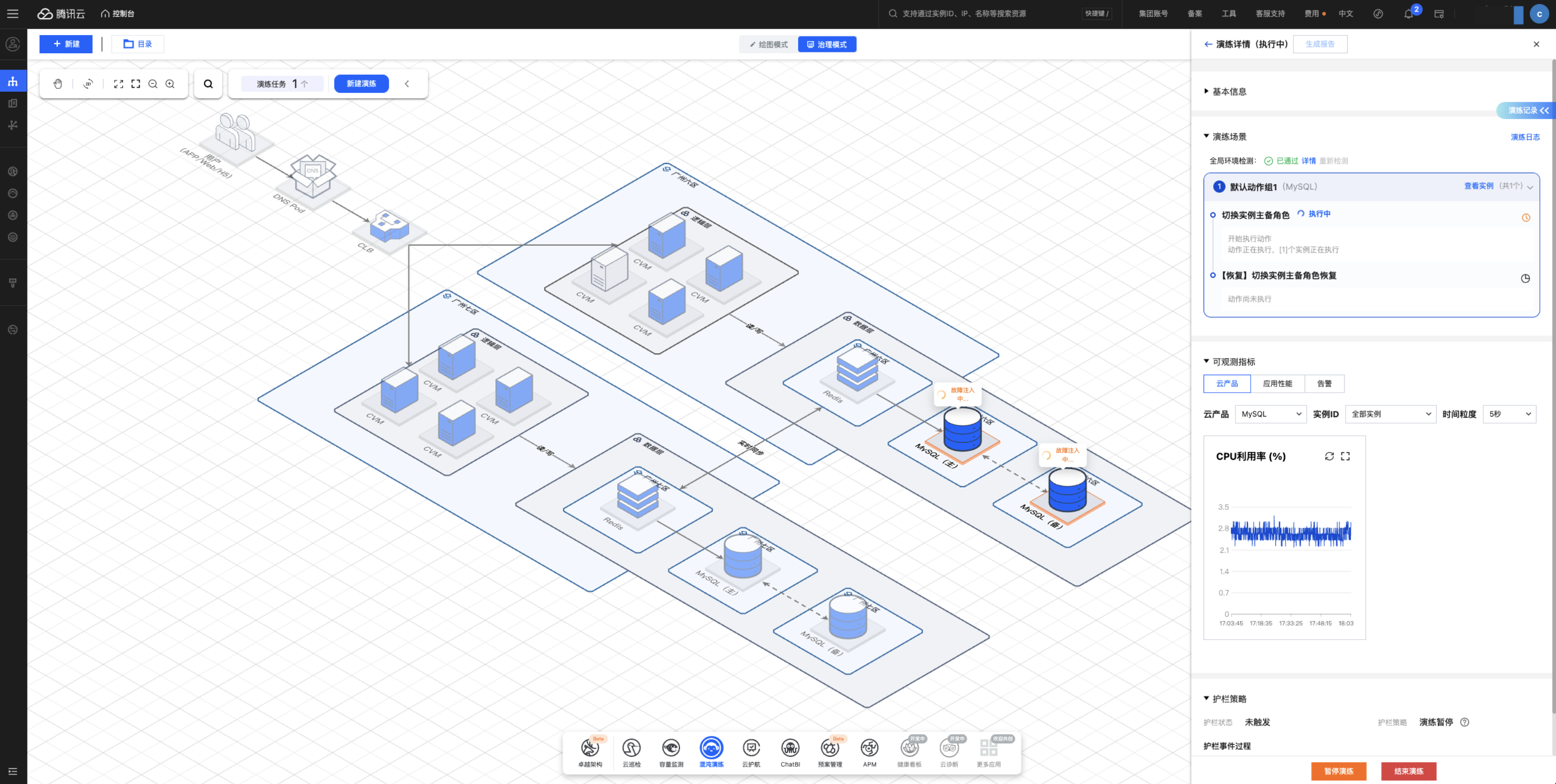 2. 演练开始后,可通过云架构可视化观测演练实行效果: