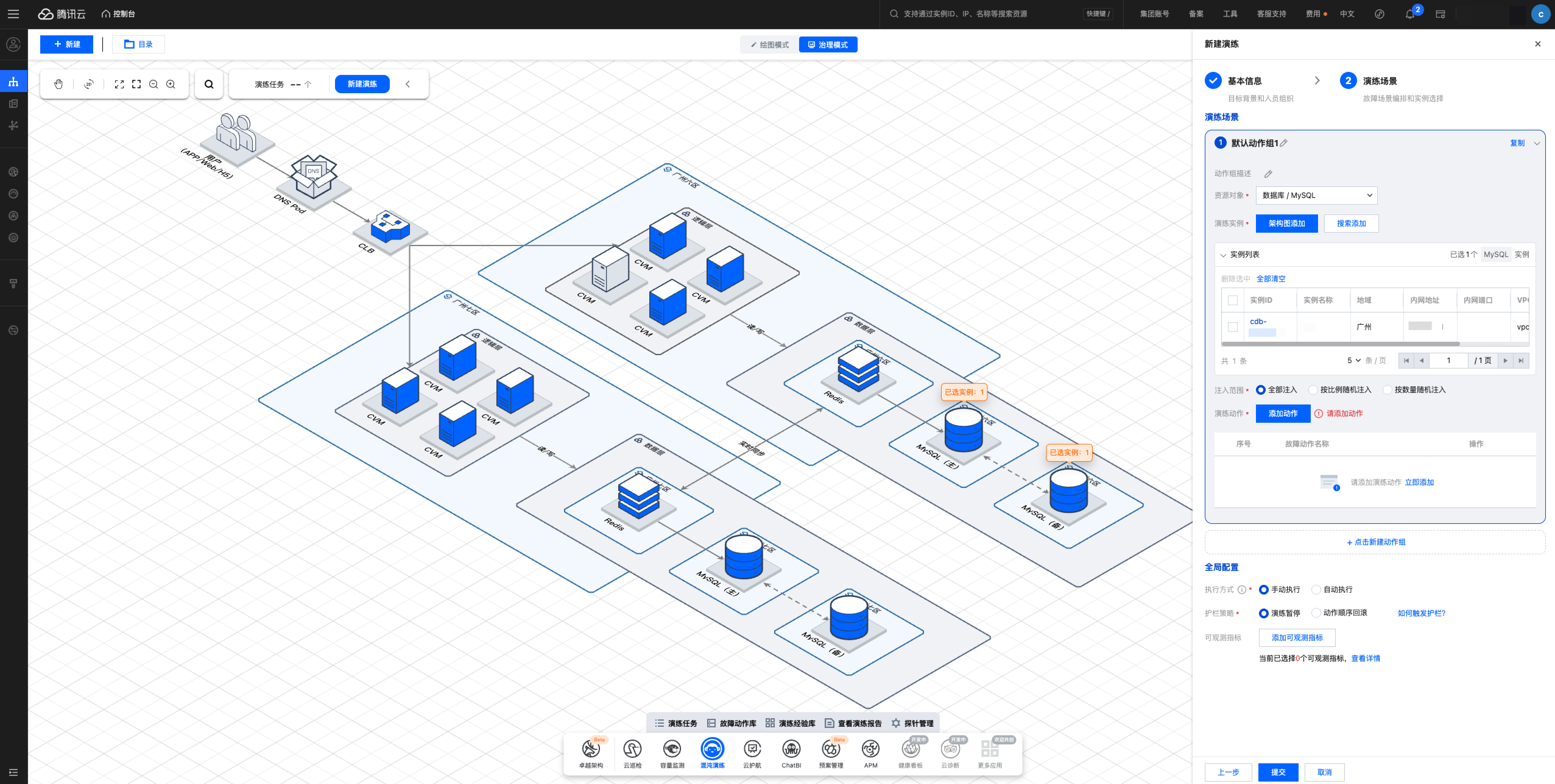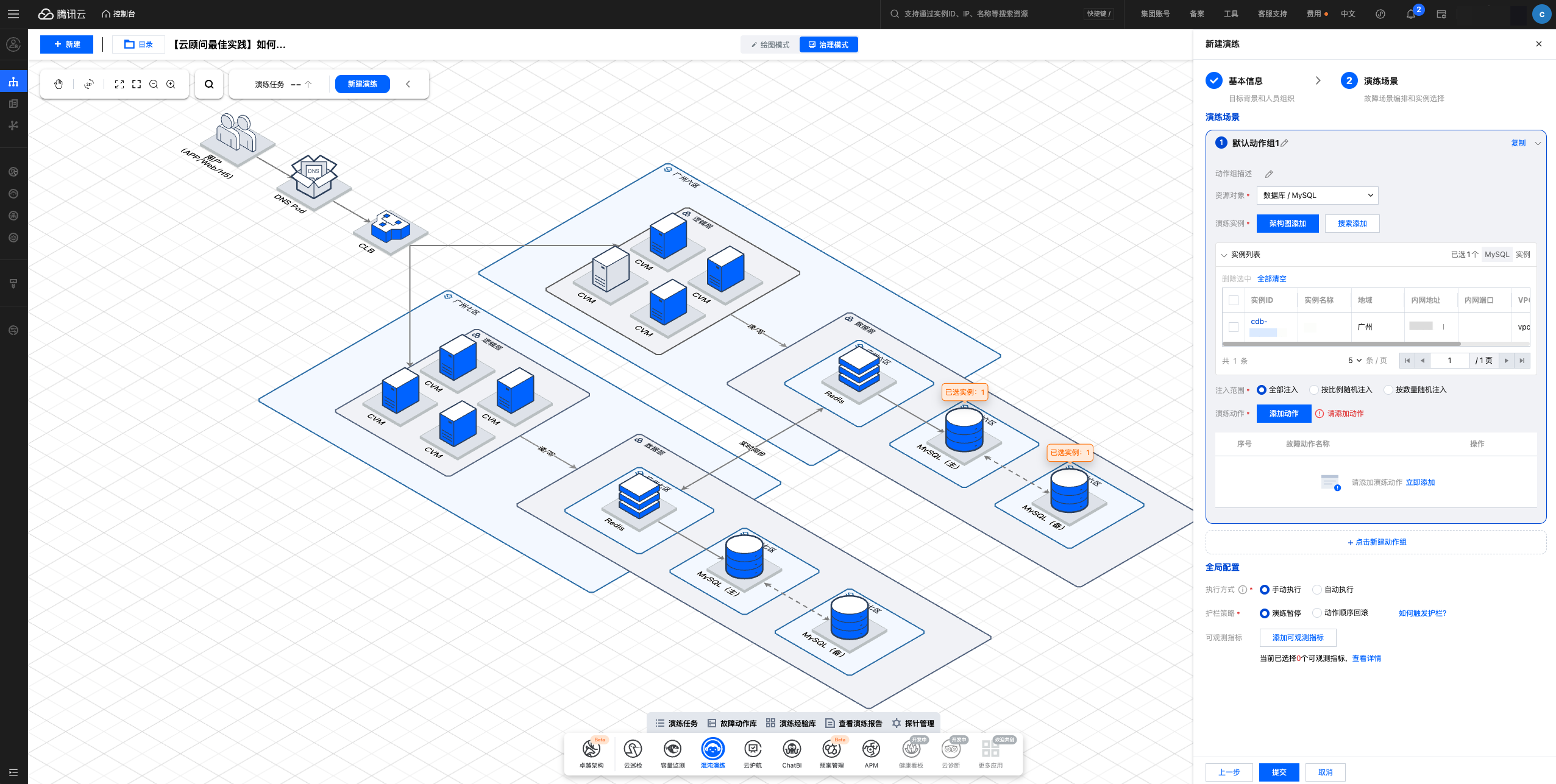 通过故障动作库、演练经验库,复用故障动作/行业经验,并配置实例,亦可完成演练任务创建。