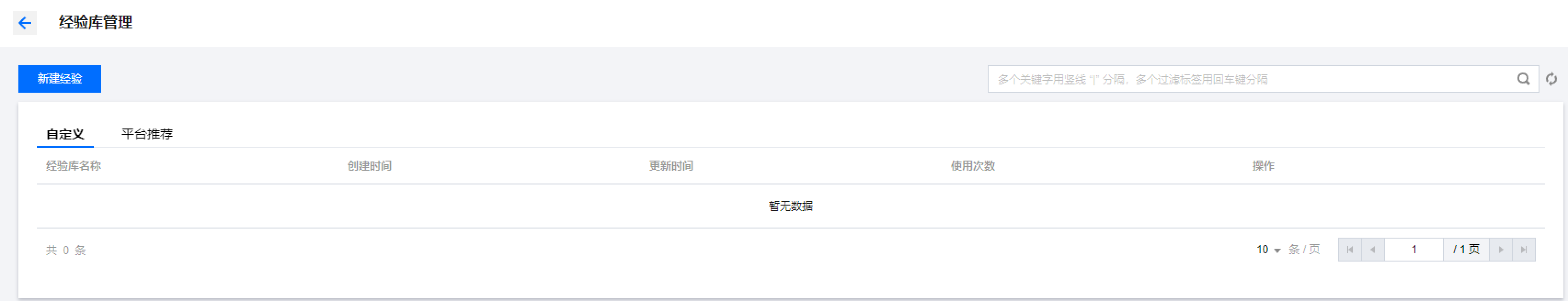 1. 单击 新建经验,填写经验库的基本信息。此处添加标签可以方便您进行筛选和资源权限限制。